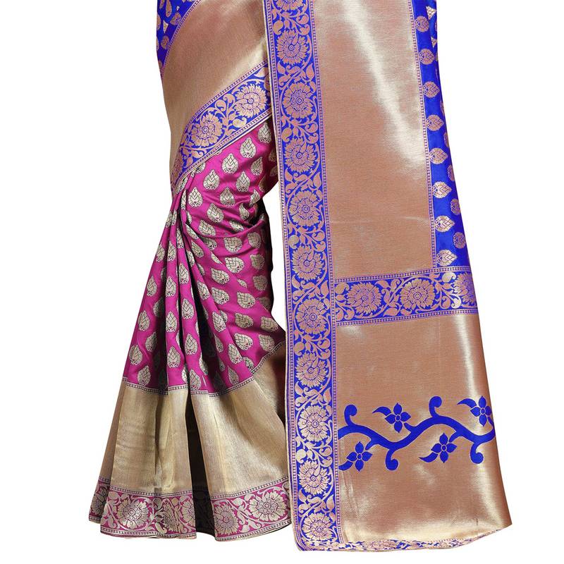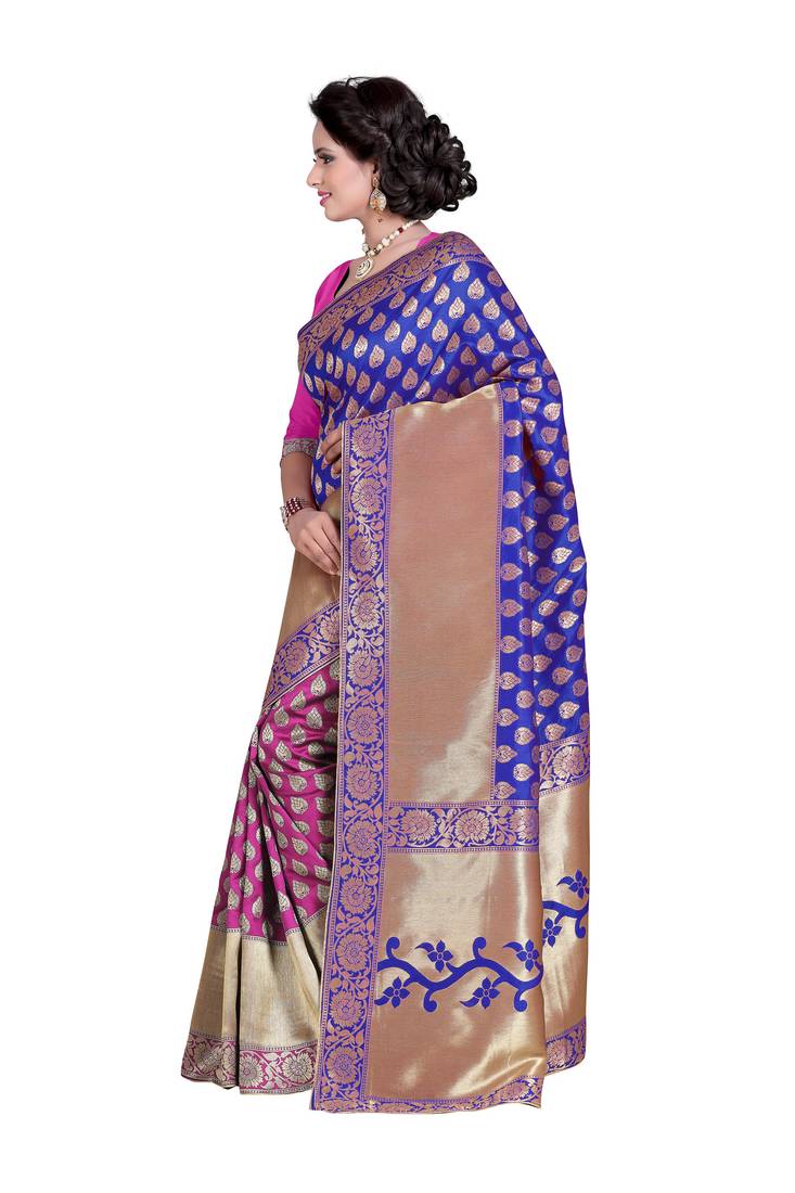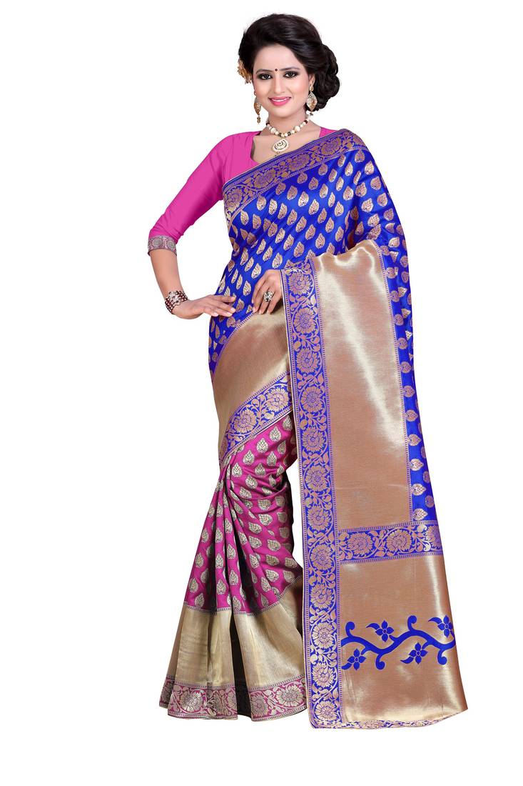 Product Description | Saree Colour : Blue , Saree Fabric: Banarasi Silk, Blouse Colour:Pink,Blouse Fabric: Polycotton, Size : Saree 5.5 Mts, Blouse 0.8 Mts |