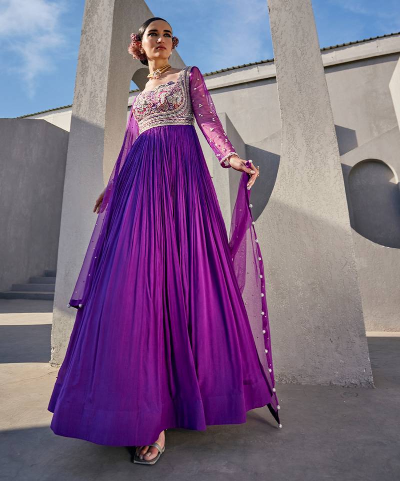 | Product Name | Bright Purple Silk Blend Floral Embroidered Anarkali | |