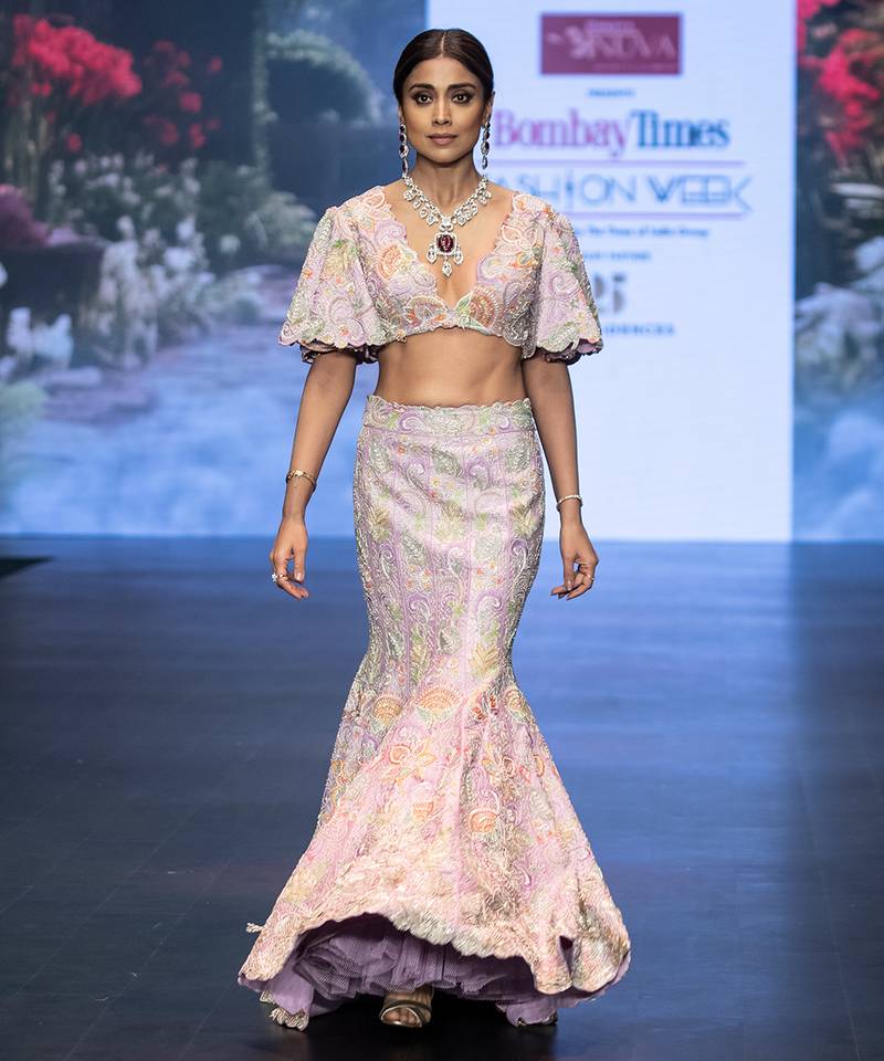 Lavender embroidered silk lehenga set