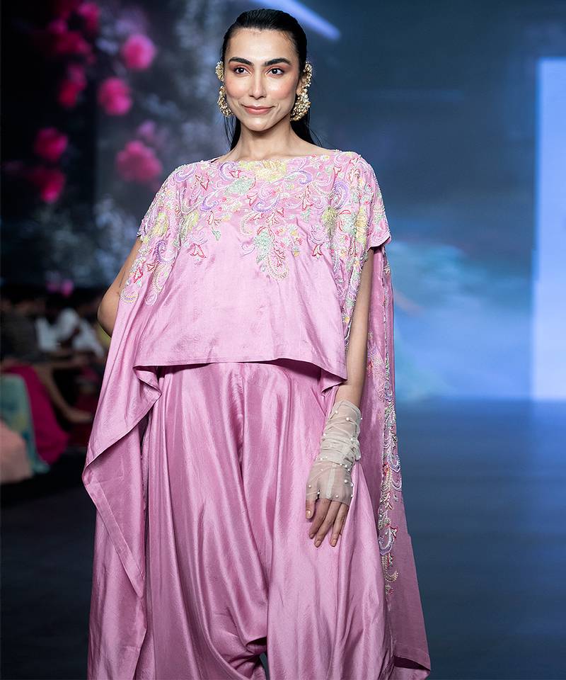 Pink embroidered puresilk co ord set