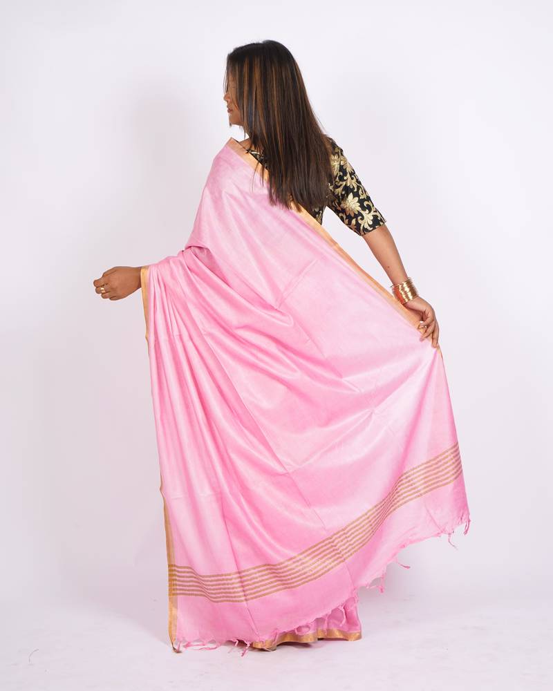 Baby pink zari work blended cotton staple bhagalpuri ethnic saree with unstitched blouse