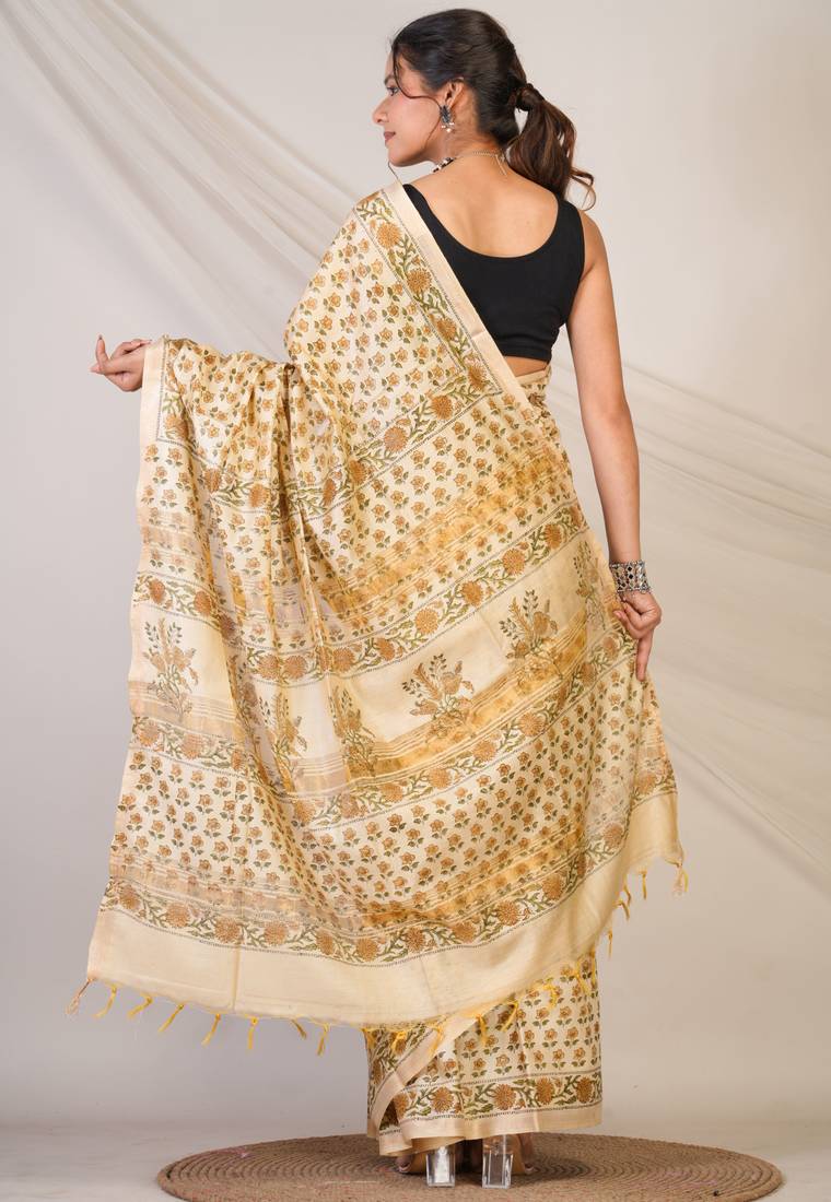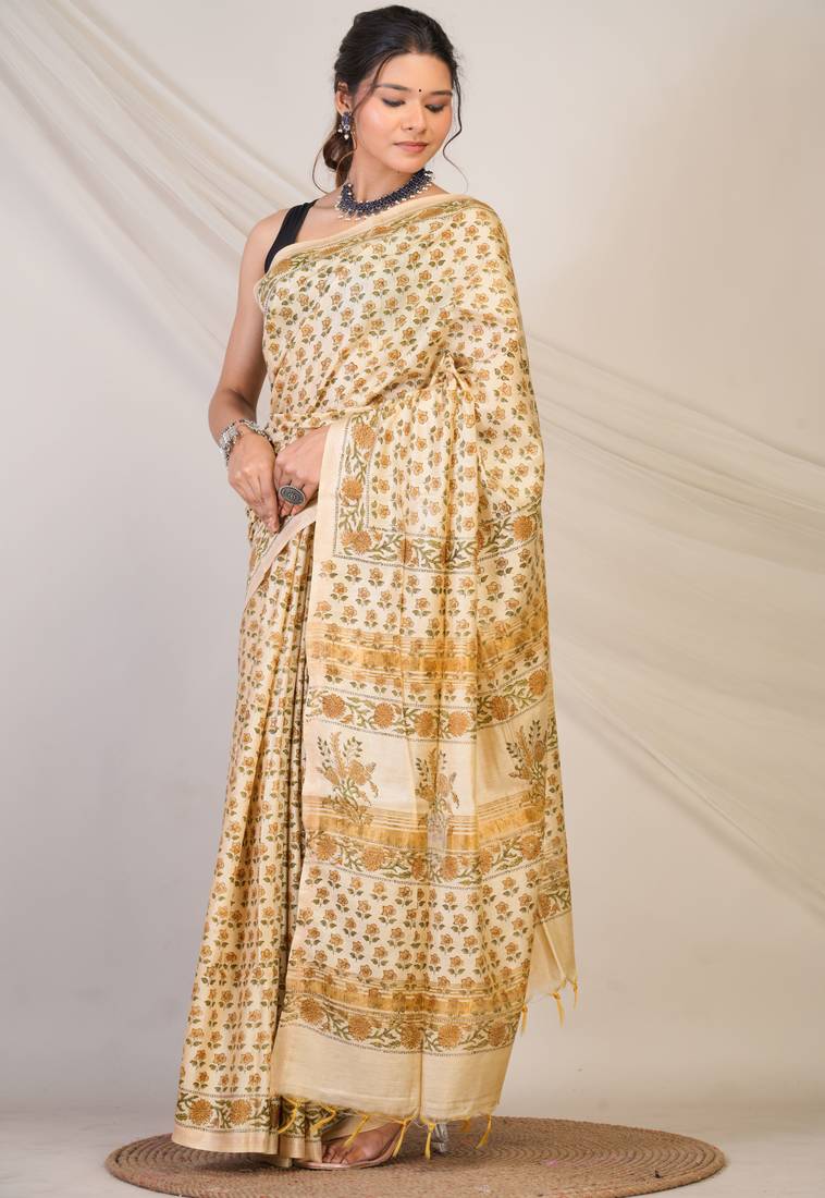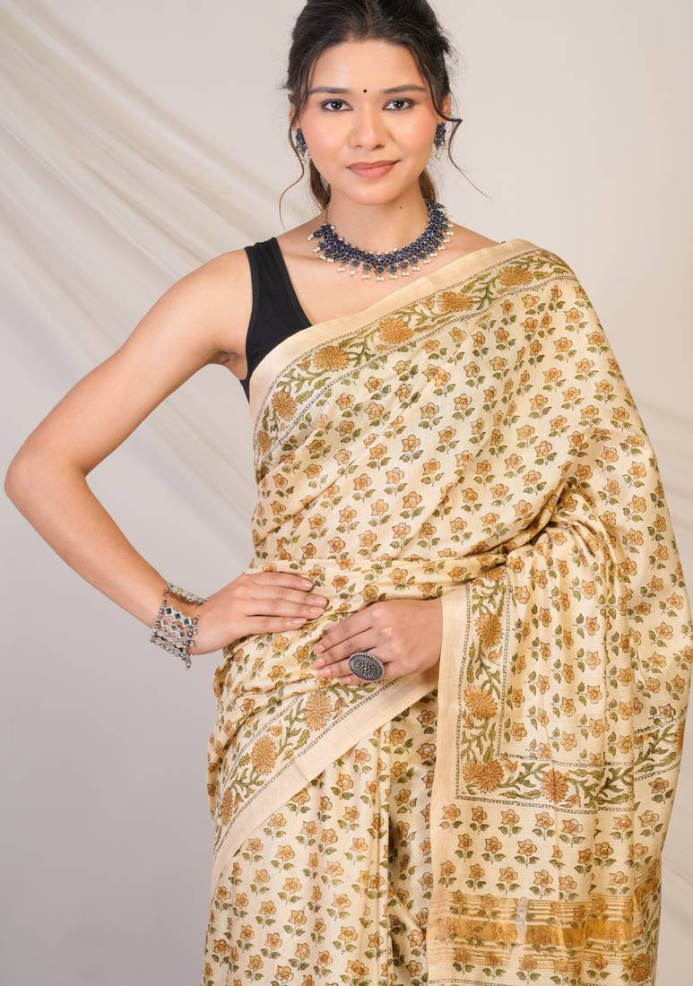 | Product Name | Beige Zari Work, Tassle Jay Shree Cotton Fine Bhagalpuri Ethnic Saree With Unstitched Blouse | |