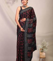 Black & red embellished modal silk blend bhagalpuri ethnic saree with unstitched blouse