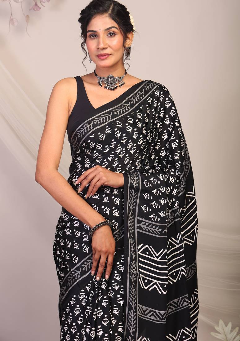 | Product Name | Black & White Embellished Modal Silk Blend Bhagalpuri Ethnic Saree With Unstitched Blouse | |
