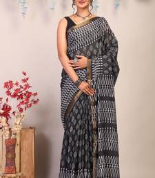 Black & white zari work cotton silk blend bhagalpuri ethnic saree with unstitched blouse
