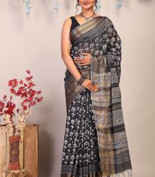 Black & white zari work cotton silk blend bhagalpuri ethnic saree with unstitched blouse