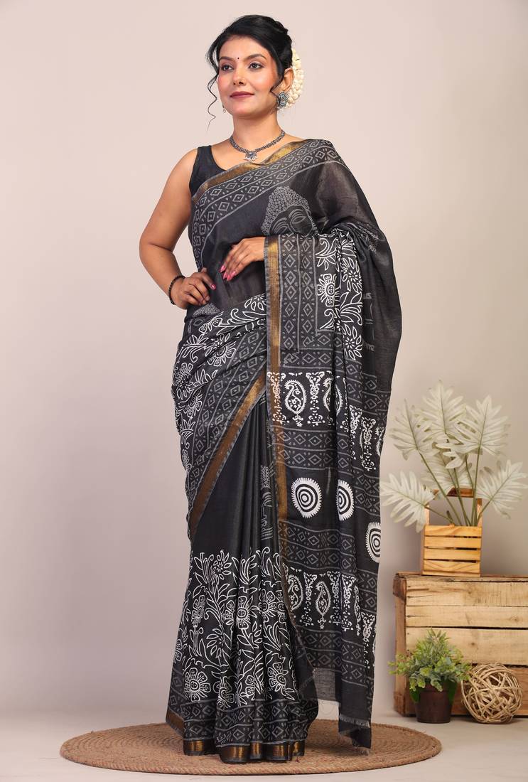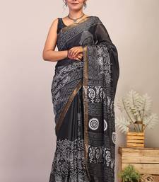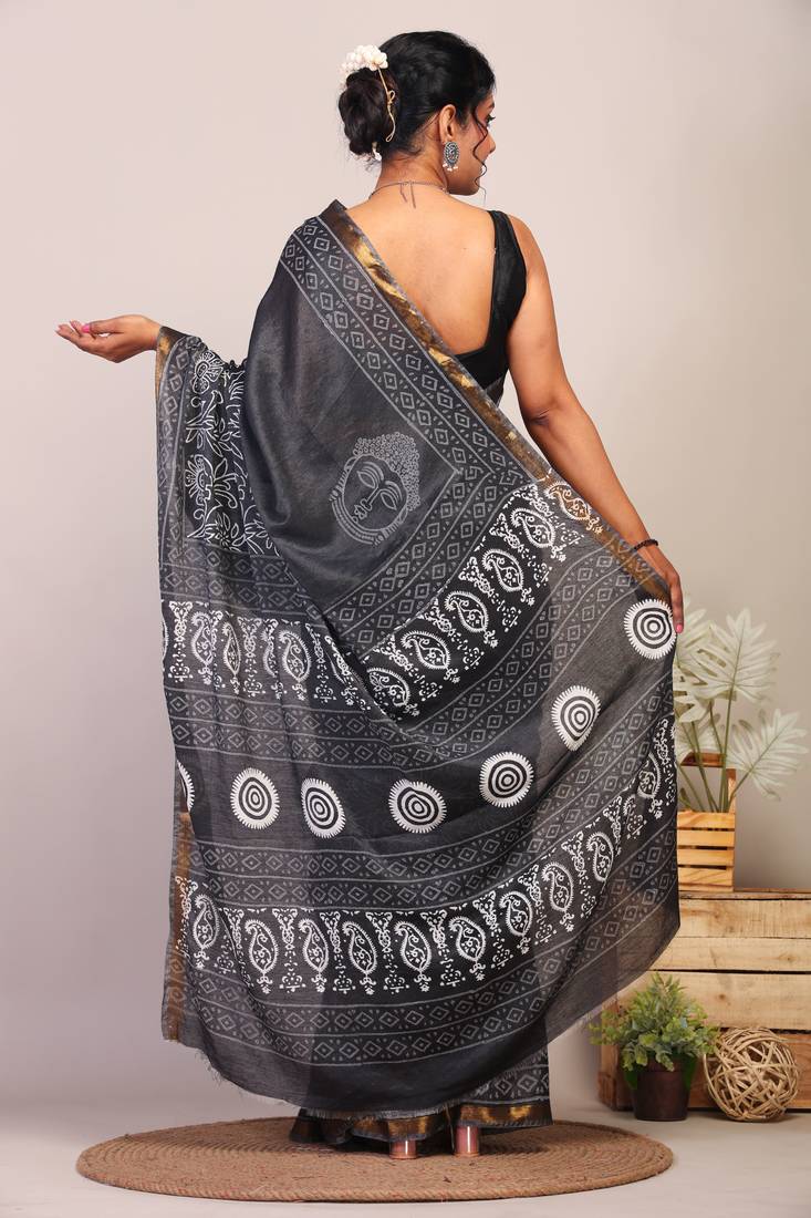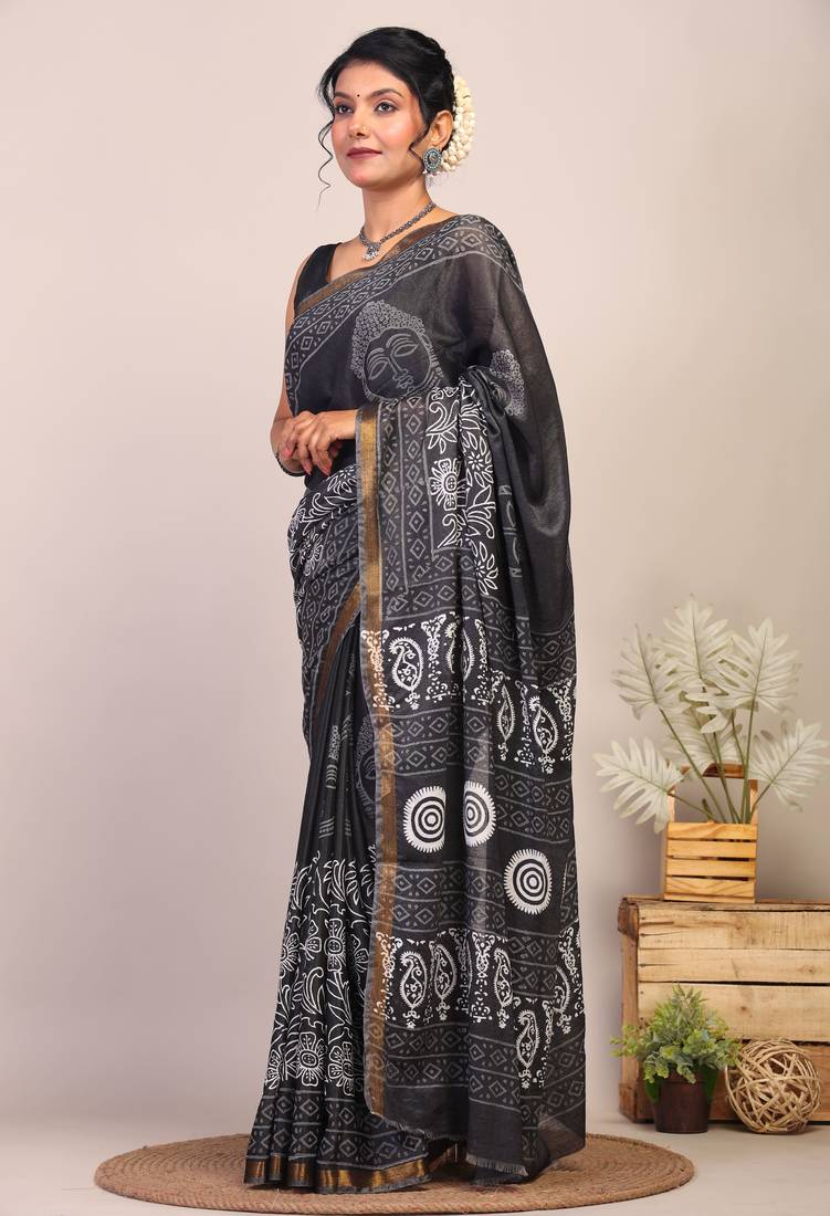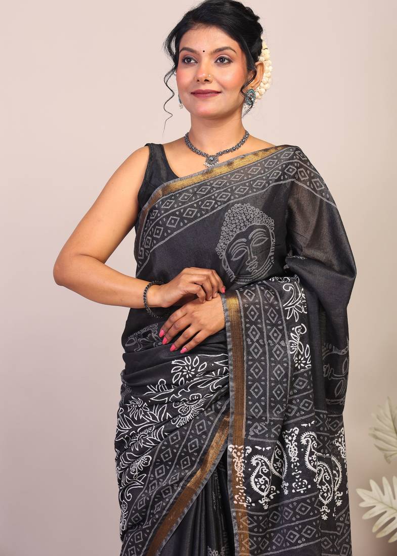 Black & white zari work cotton silk blend bhagalpuri ethnic saree with unstitched blouse
