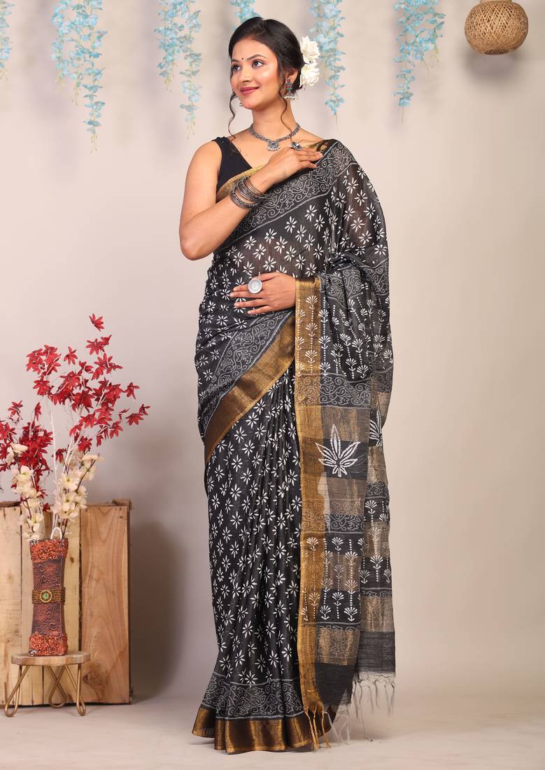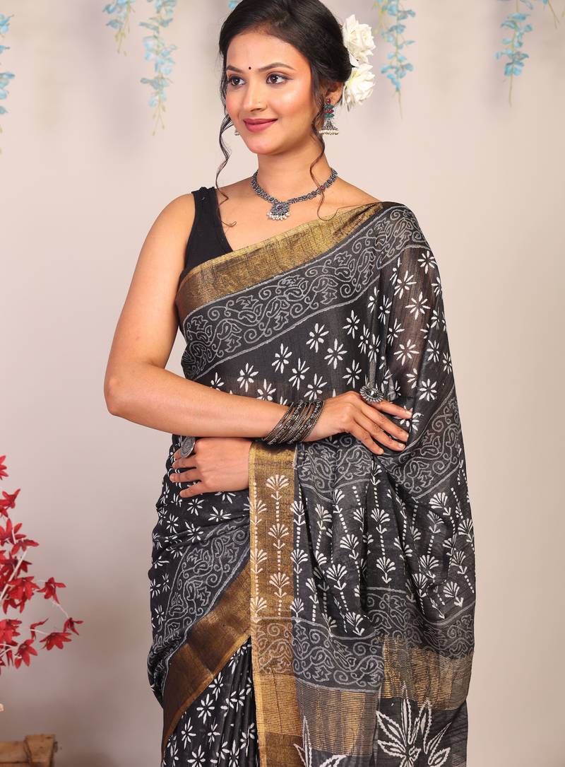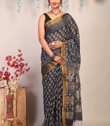 Black & white zari work cotton silk blend bhagalpuri ethnic saree with unstitched blouse