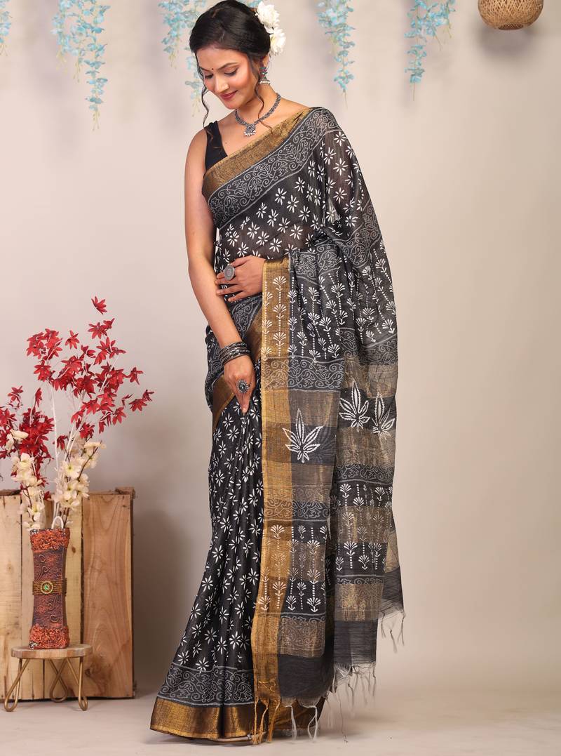| Product Name | Black & White Zari Work Cotton Silk Blend Bhagalpuri Ethnic Saree With Unstitched Blouse | |
