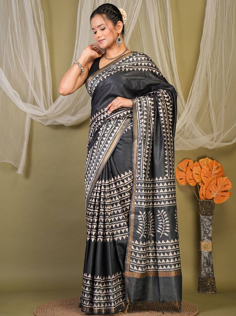 | Product Name | Black Zari Work Cotton Silk Blend Bhagalpuri Ethnic Saree With Unstitched Blouse | |