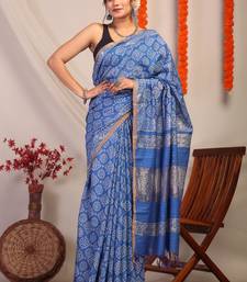 blue zari work, sequence cotton silk blend bhagalpuri ethnic saree with unstitched blouse