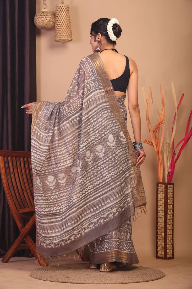 Brown zari work cotton silk blend bhagalpuri ethnic saree with unstitched blouse