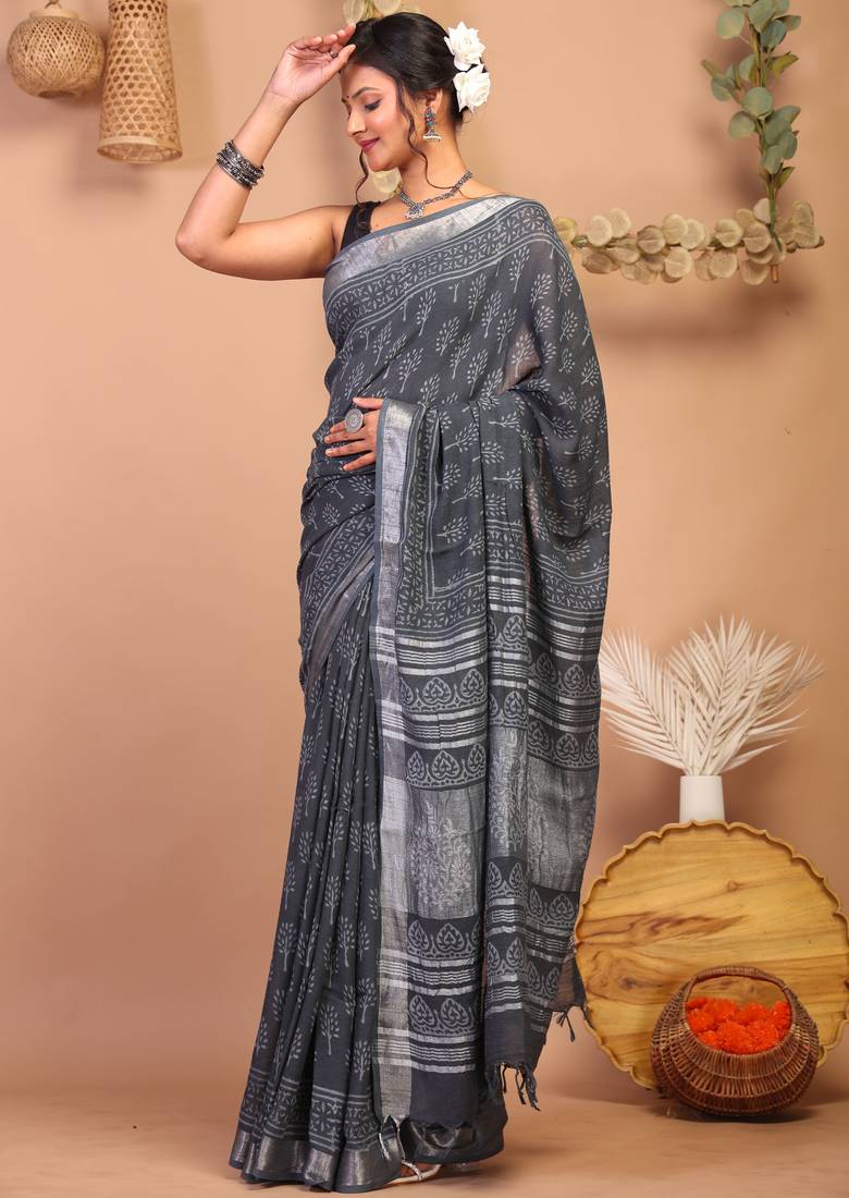 | Product Name | Gray Zari Work Cotton Linen Bhagalpuri Ethnic Saree With Unstitched Blouse | |