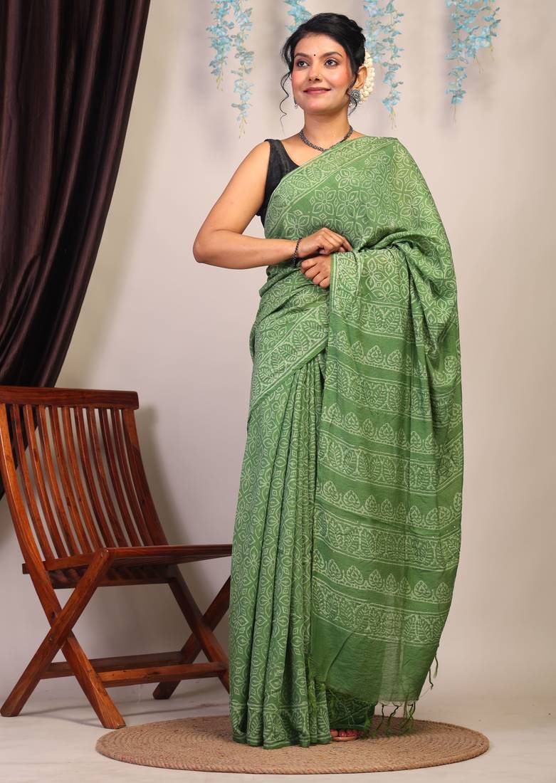| Product Description | Introducing Our Green Bhagalpuri Cotton Silk Printed Border Hand Block Ethnic Saree With Blouse. This Stunning Saree Showcases The Perfect Fusion Of The Famous Bhagalpuri Weave And Traditional Block Printing. |