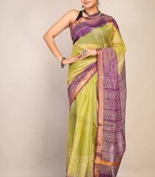Green & violet zari work kota doria kota doria ethnic saree with unstitched blouse