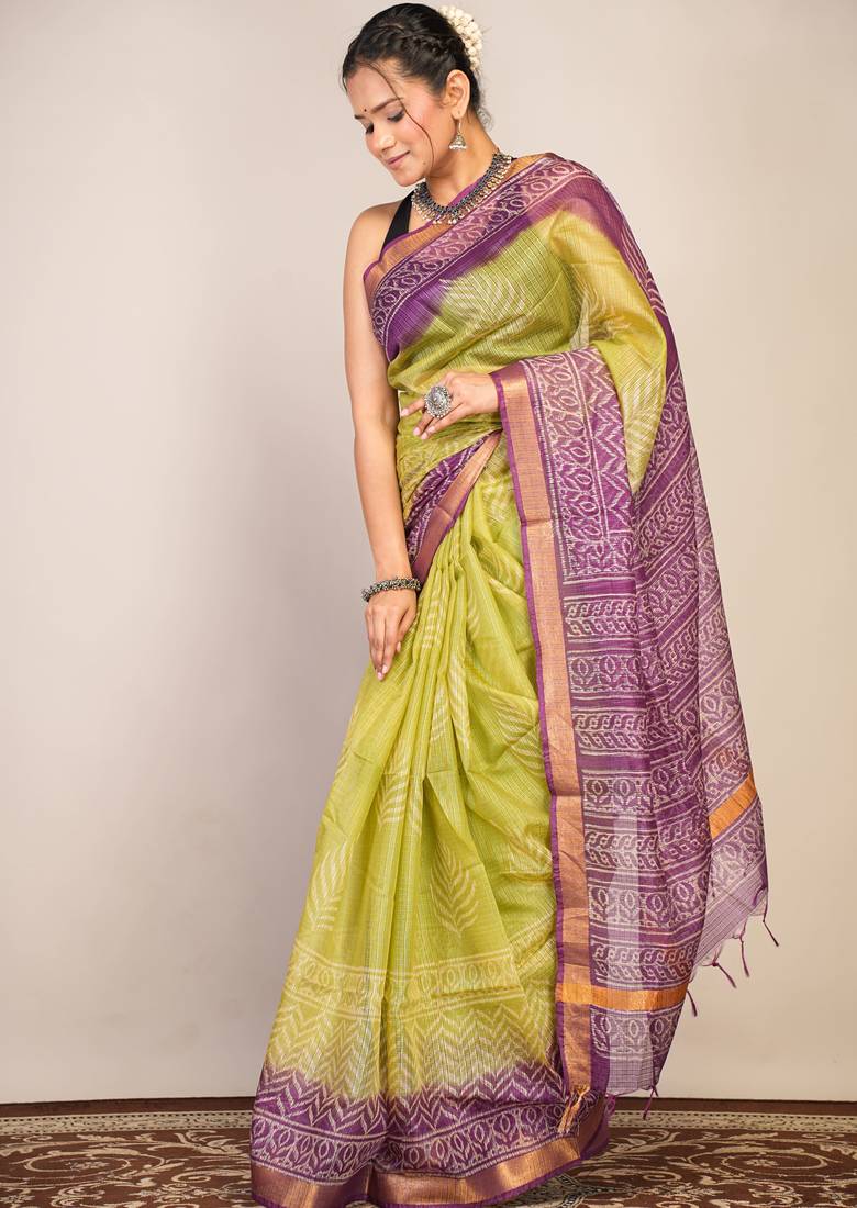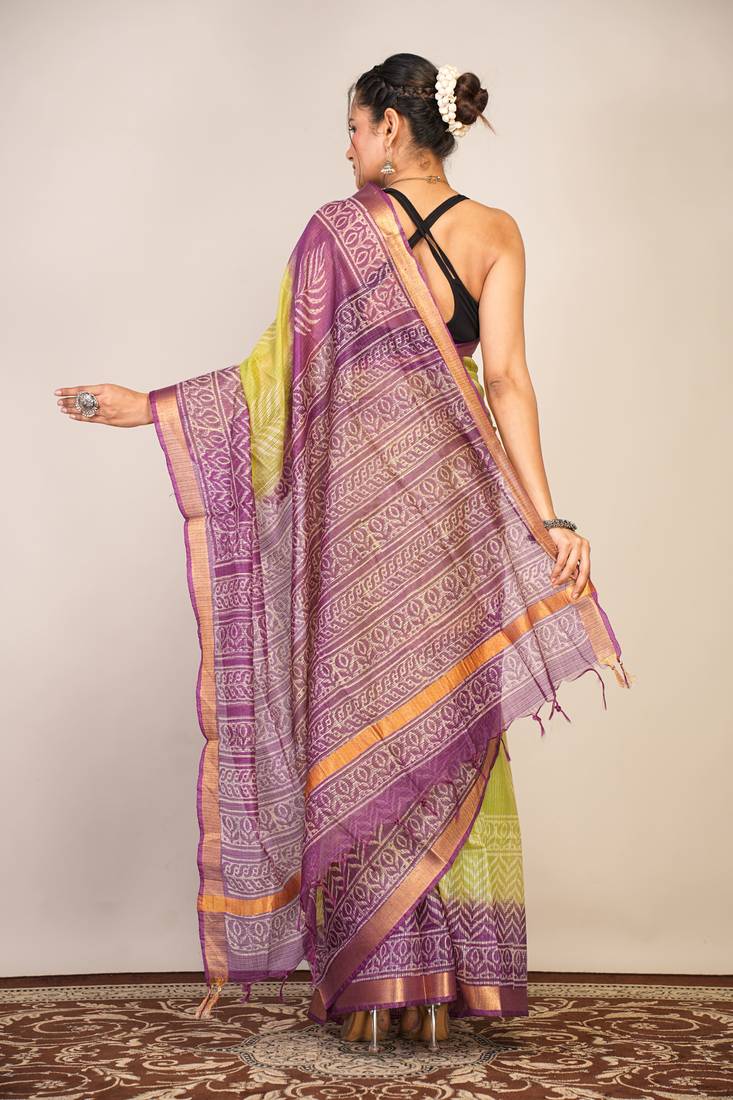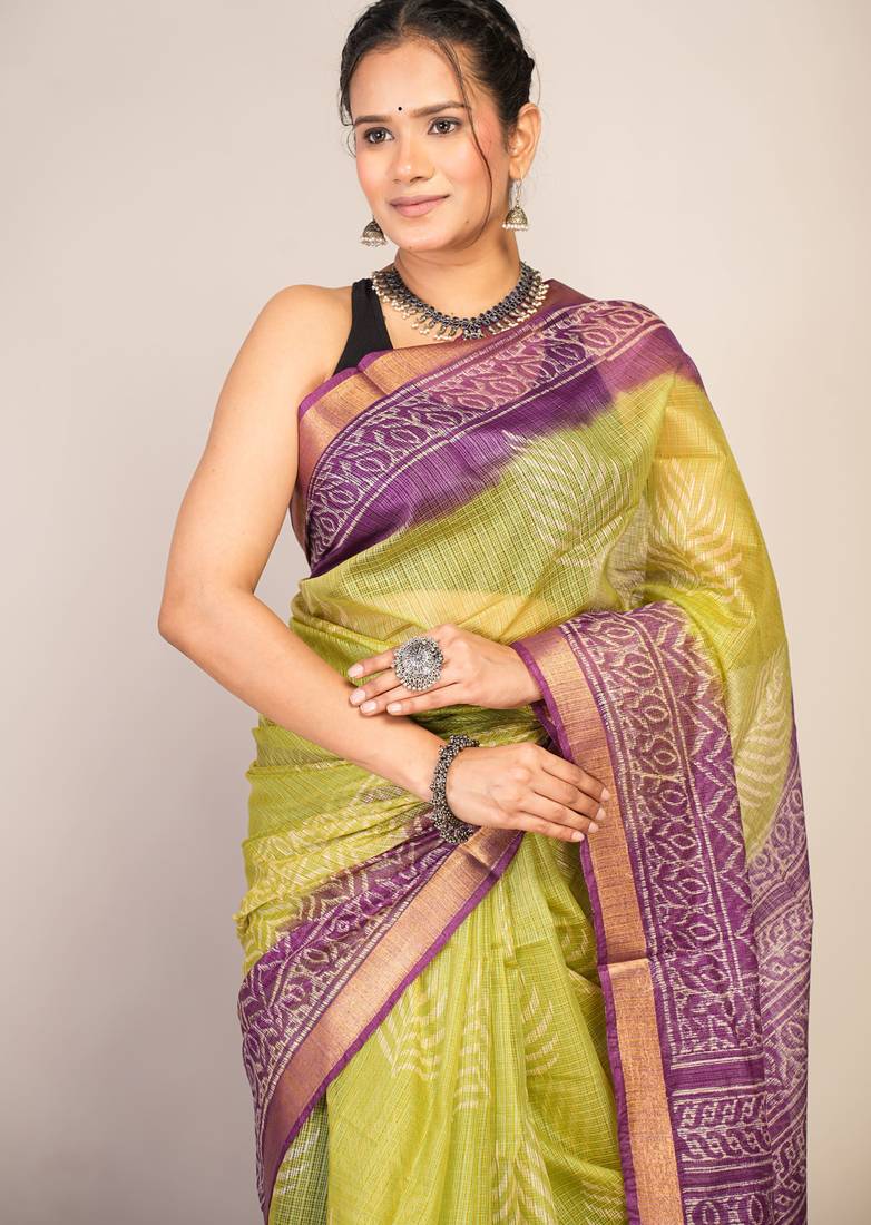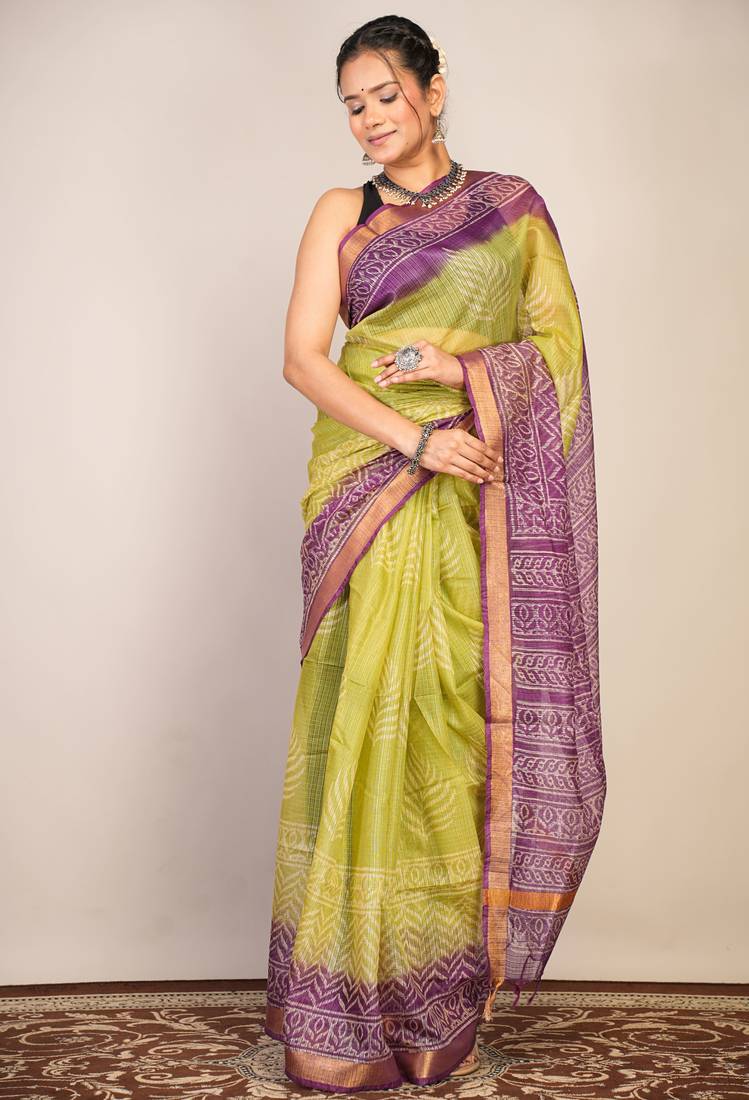 | Product Description | Where Tradition Meets Refined Elegance — This Green & Violet Kota Doria Saree Is A True Masterpiece For The Woman Who Appreciates Classic Beauty With A Modern Touch. Made From Soft, Breathable Kota Doria Fabric, It Drapes Effortlessly While Showcasing Hand Block Printed Floral Zig Zag Patterns That Speak Of Artisanal Excellence.Complete With A Coordinated Unstitched Blouse, It Invites You To Create A Look That’s Uniquely Yours — Be It Richly Traditional Or Elegantly Contemporary. |