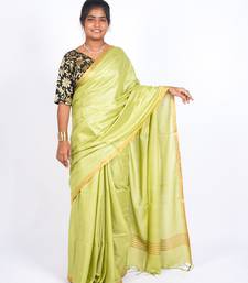 Green zari work blended cotton staple bhagalpuri ethnic saree with unstitched blouse
