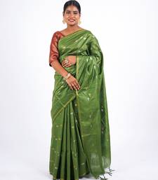 Green zari work, sequence cotton silk blend bhagalpuri ethnic saree with unstitched blouse