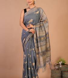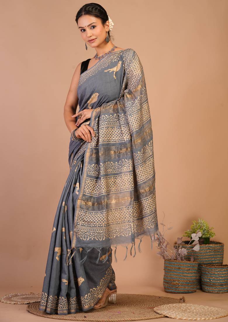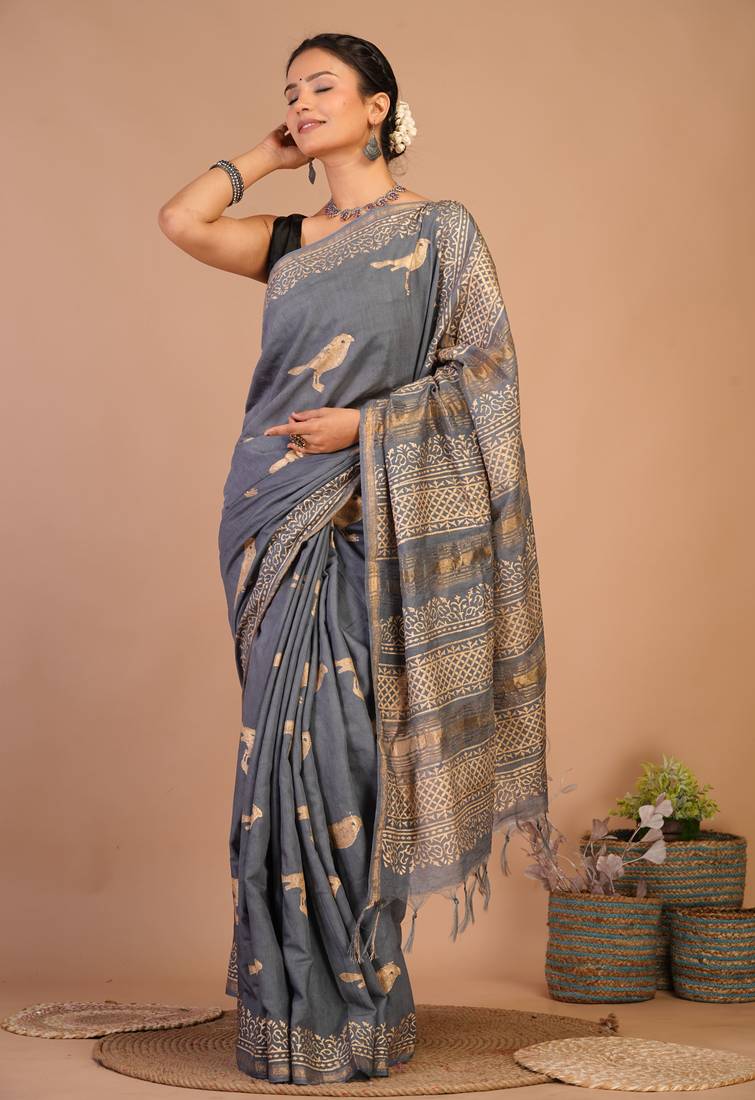 Grey zari work, tassle jay shree cotton fine bhagalpuri ethnic saree with unstitched blouse