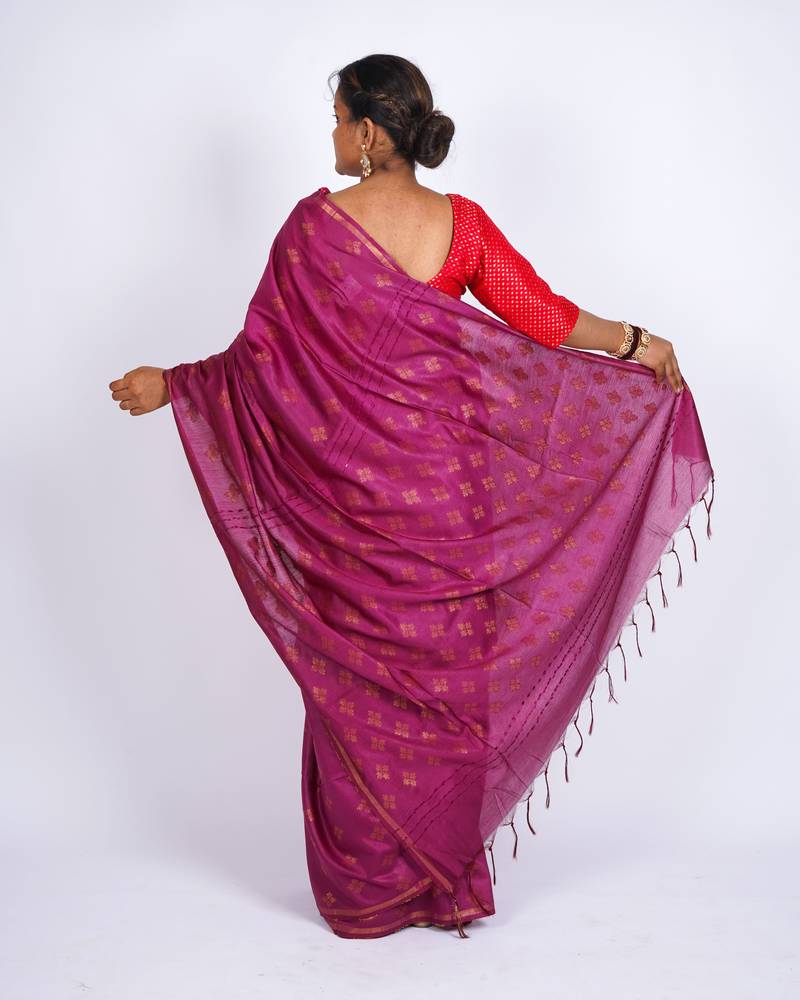 Magenta zari work, sequence cotton silk blend bhagalpuri ethnic saree with unstitched blouse