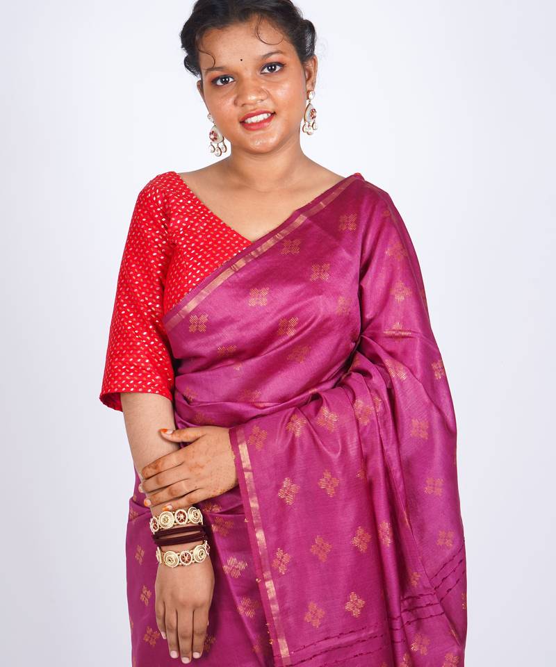 | Product Description | Add A Vibrant Touch To Your Ethnic Collection With This Anuttara Women’s Bhagalpuri Cotton Silk Saree In A Striking Magenta Shade. Featuring Zari Buta Motifs, Delicate Embellishments, And Sparkling Sequins, It Brings Together Festive Richness And Contemporary Charm. The Frill Design Enhances Its Stylish Appeal, Making It Perfect For Weddings And Cultural Gatherings.Crafted From Premium Cotton Silk, The Saree Feels Soft On The Skin, Drapes Elegantly, And Ensures Breathable Comfort. |