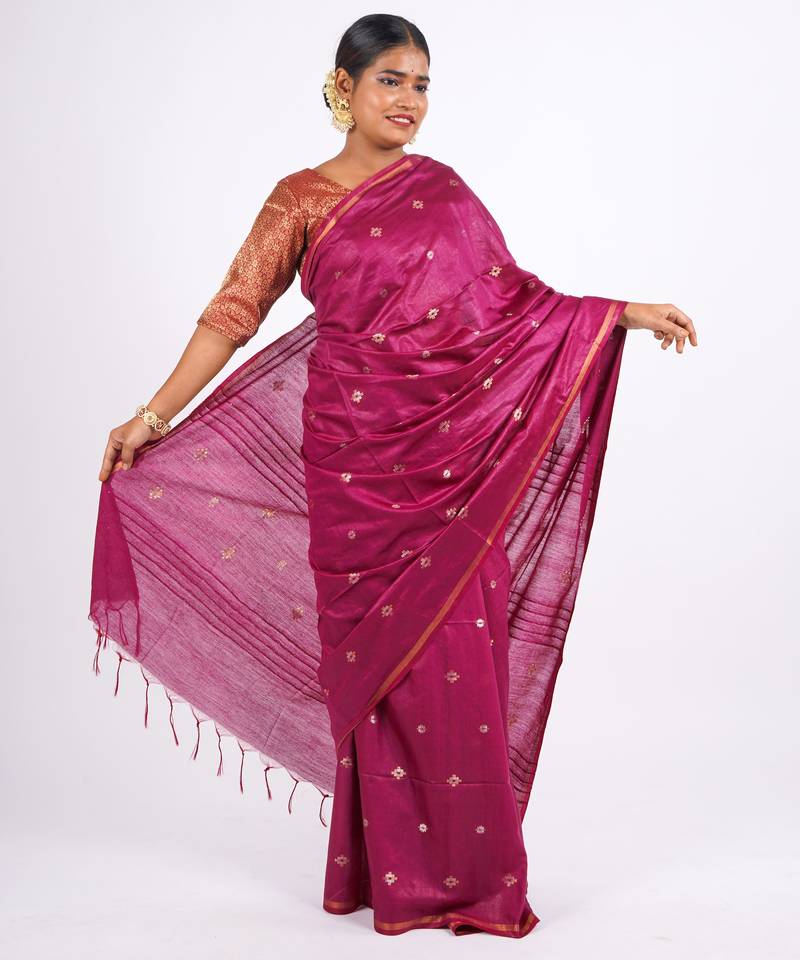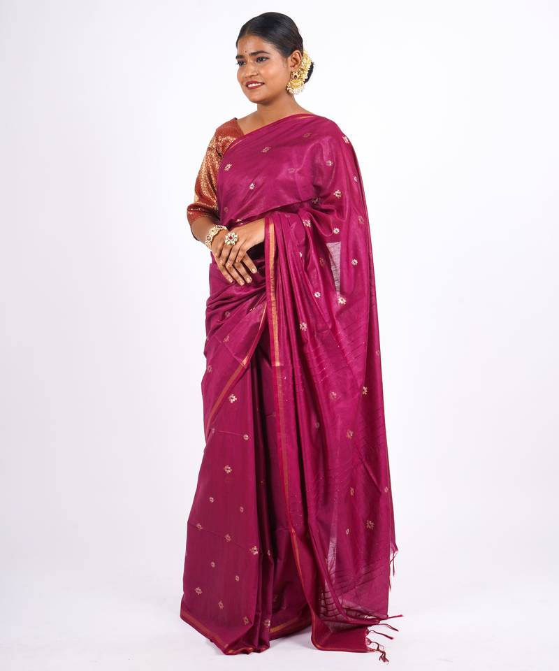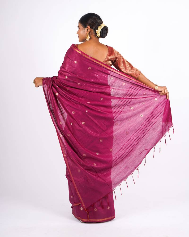 Magenta zari work, sequence cotton silk blend bhagalpuri ethnic saree with unstitched blouse