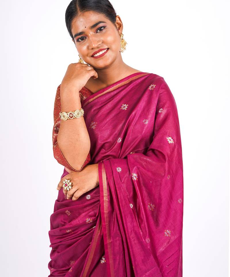 | • | Saree | : | Color- Magenta / Fabric- Cotton Silk |