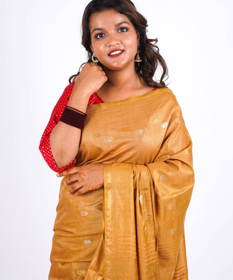 | Product Description | Bring A Vibrant Ethnic Charm To Your Festive Wardrobe With This Anuttara Women’s Bhagalpuri Cotton Silk Saree In A Stylish Mustard Shade. Decorated With Zari Buta Motifs, Sequins, And Fine Embellishments, It Perfectly Balances Traditional Beauty With A Festive Sparkle. The Frill Design Gives It A Modern Touch, Making It A Standout Choice For Weddings And Special Occasions.Crafted From Premium Cotton Silk, The Saree Offers A Smooth Feel, Lightweight Comfort, And An Elegant Drape. |