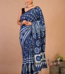 Navy blue zari work cotton silk blend bhagalpuri ethnic saree with unstitched blouse