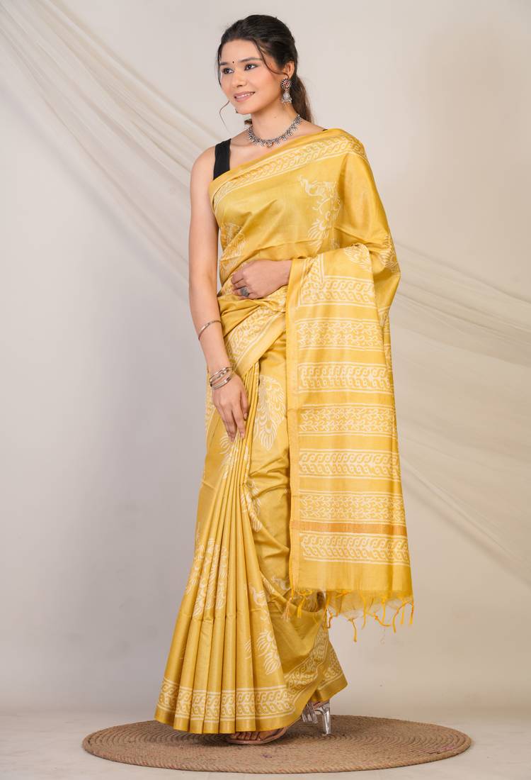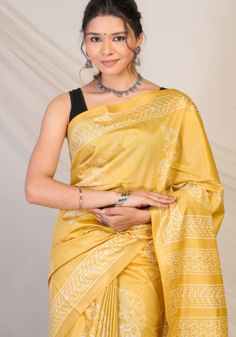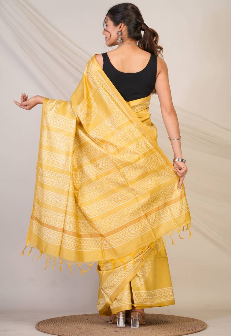 | Product Name | Yellow Zari Work Cotton Silk Blend Bhagalpuri Ethnic Saree With Unstitched Blouse | |