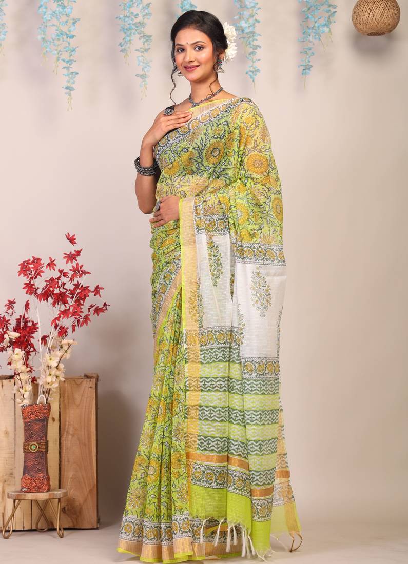 | Product Name | Parrot Green Zari Work Kota Doria Kota Doria Ethnic Saree With Unstitched Blouse | |
