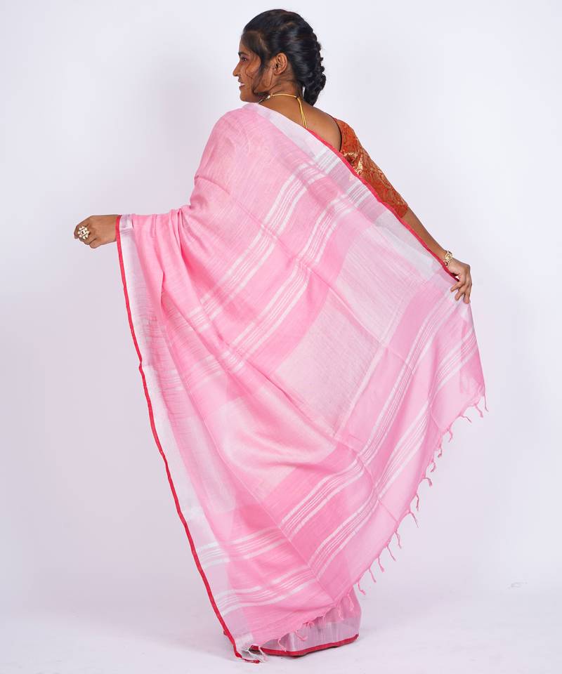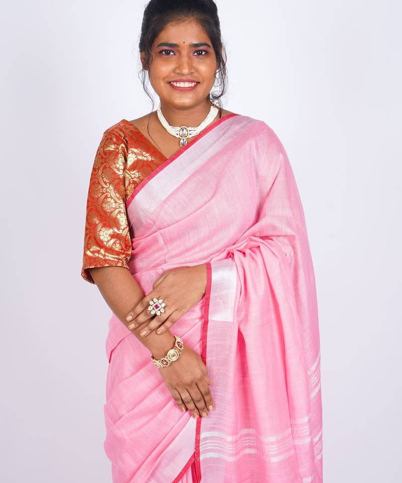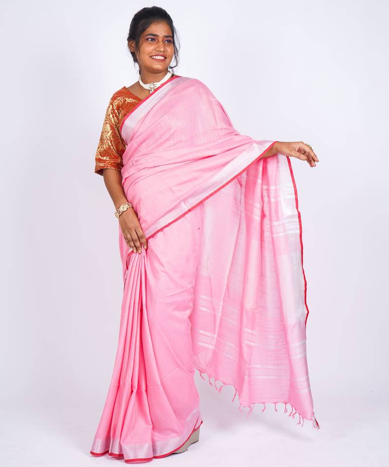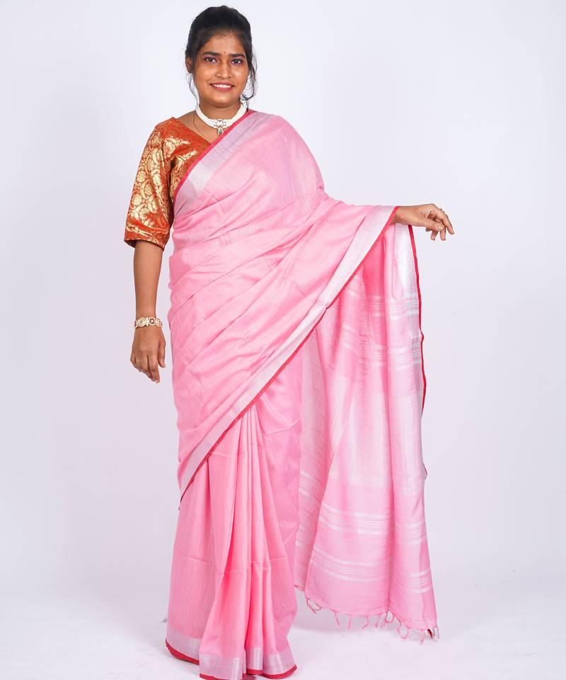 | • | Saree | : | Color- Pink / Fabric- Linen |