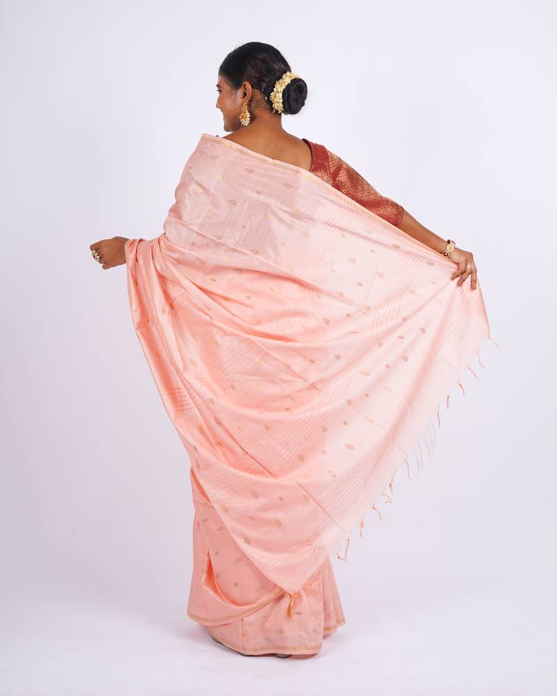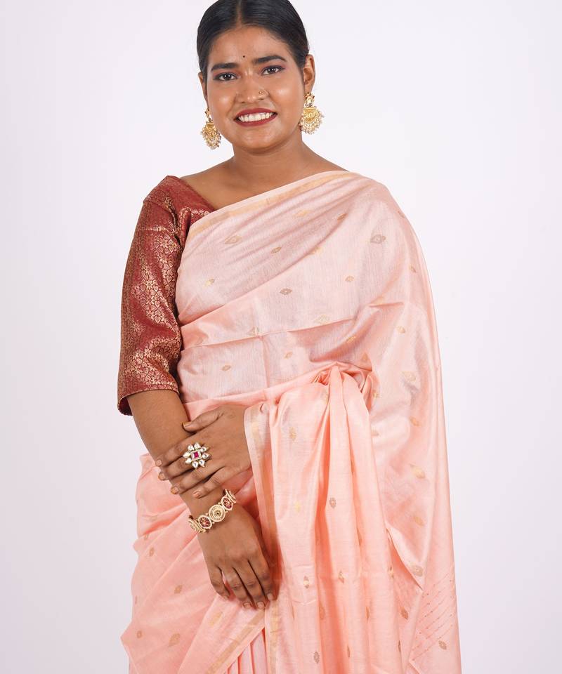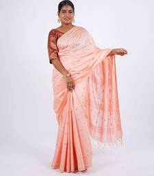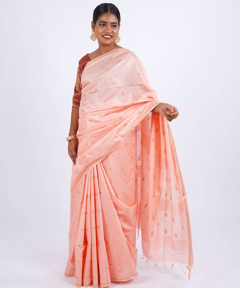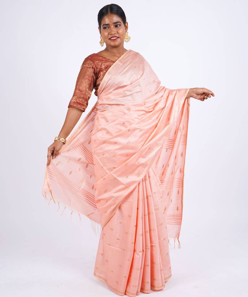 peach zari work, sequence cotton silk blend bhagalpuri ethnic saree with unstitched blouse