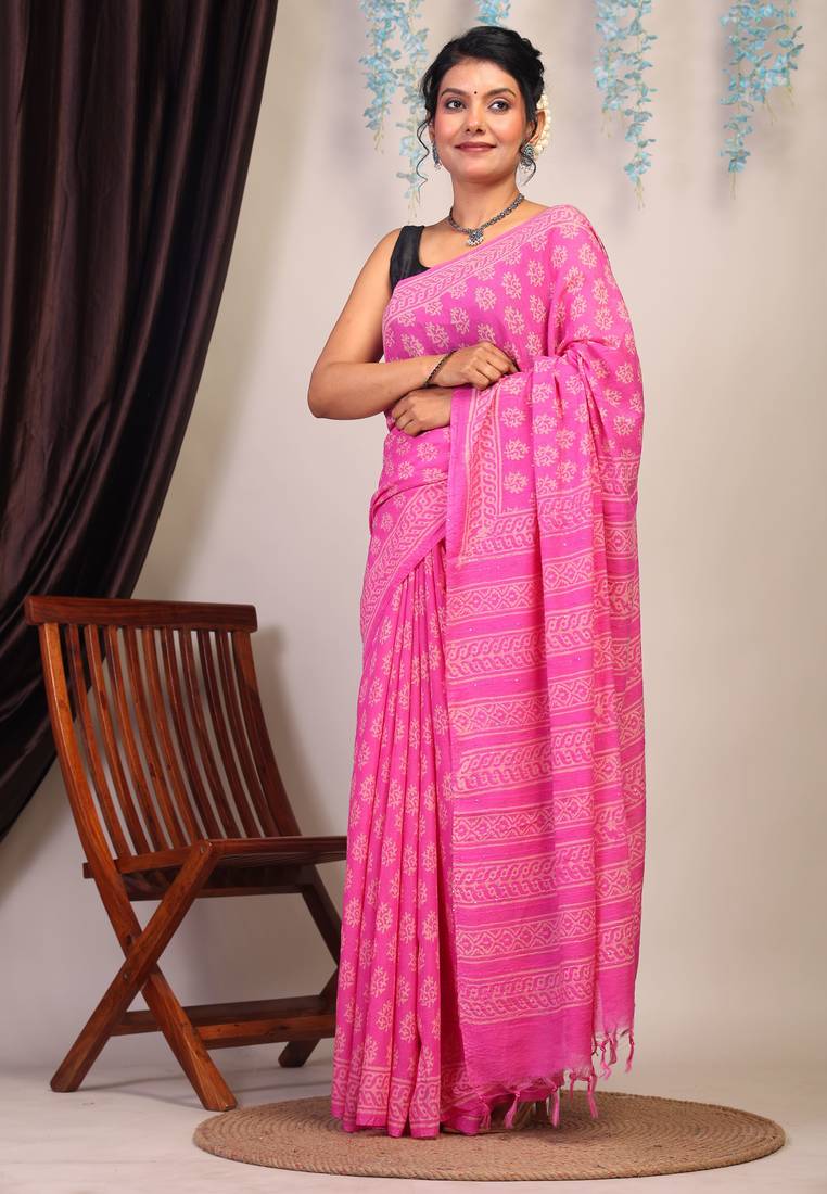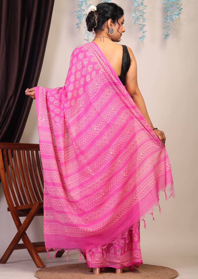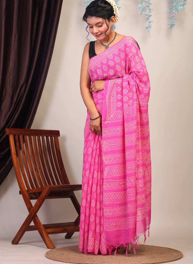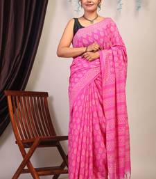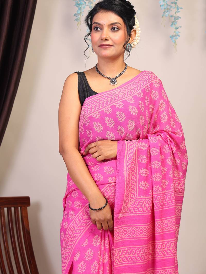 Pink sequence cotton silk blend bhagalpuri ethnic saree with unstitched blouse