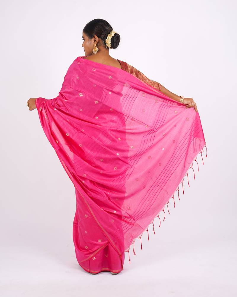 Pink zari work, sequence cotton silk blend bhagalpuri ethnic saree with unstitched blouse