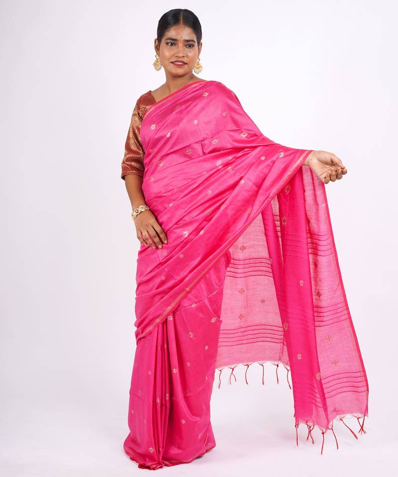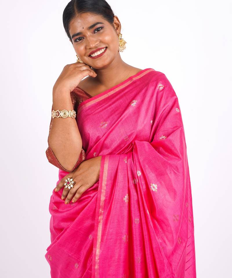 | Product Description | Step Into Festive Elegance With This Anuttara Women’s Bhagalpuri Cotton Silk Saree In A Graceful Pink Shade. Beautifully Adorned With Zari Buta Motifs, Sequins, And Frill Accents, This Saree Is The Perfect Balance Of Traditional Craftsmanship And Modern Festive Style.Made From Premium Bhagalpuri Cotton Silk, It Offers A Soft Texture, Lightweight Comfort, And A Refined Drape. |