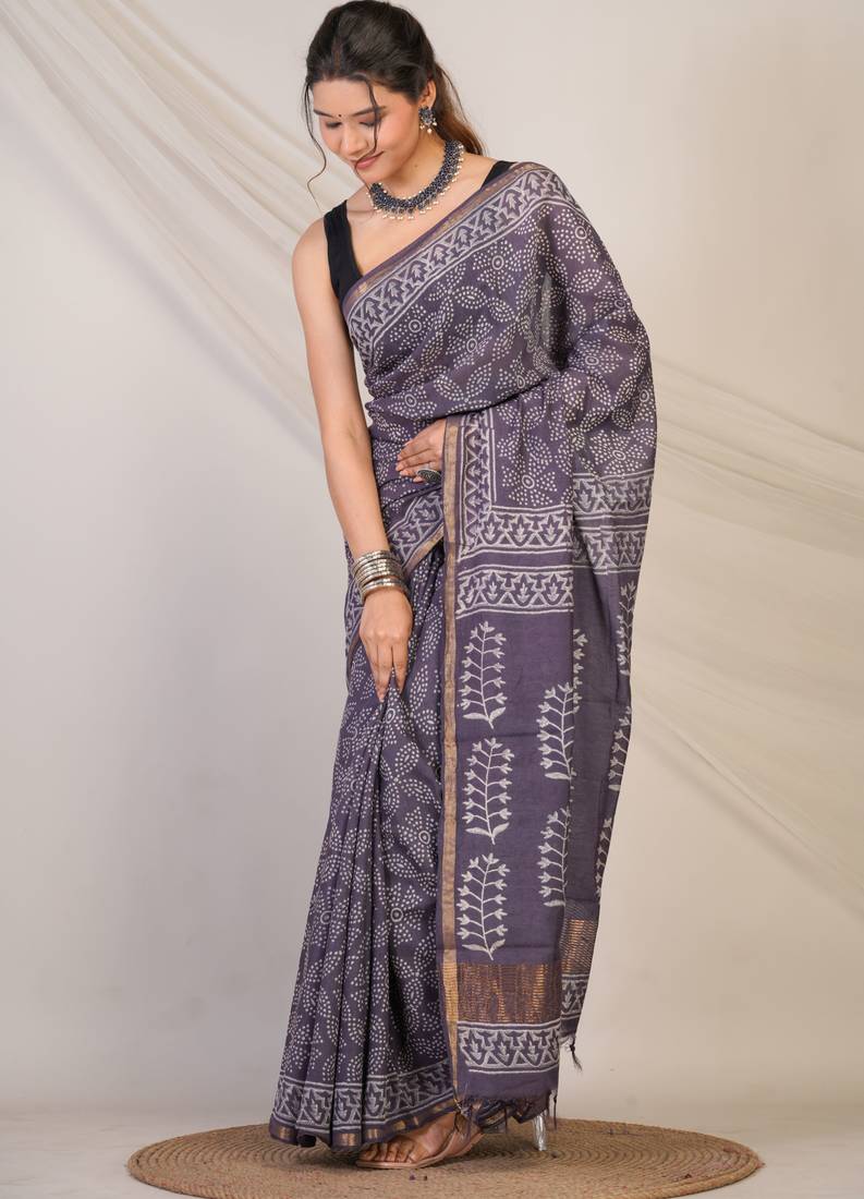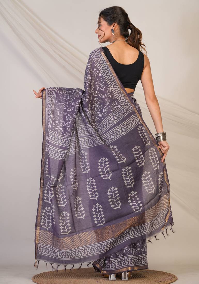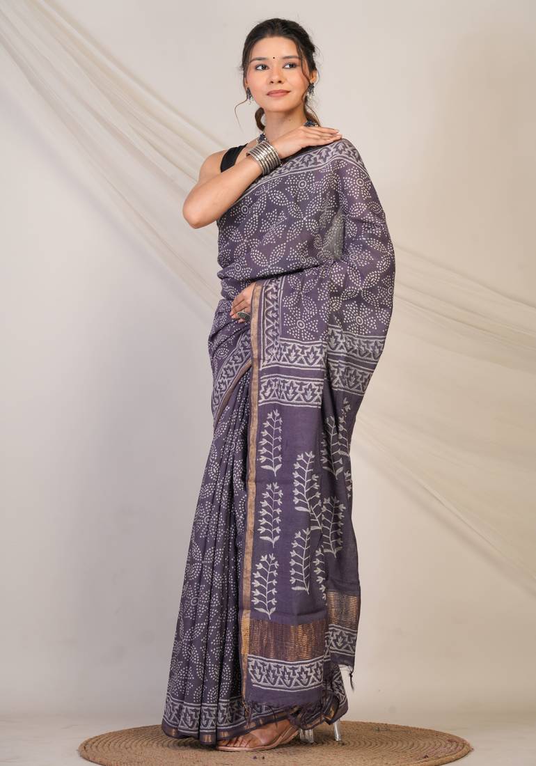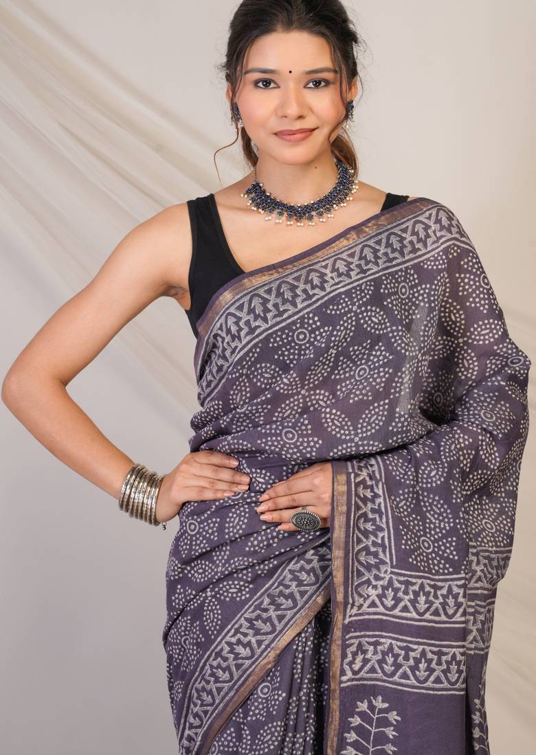 | Product Description | This Saree Offers A Graceful Drape With A Luminous Sheen That Elevates Your Festive Style.Adorned With Intricate Bandhani Inspired Hand Block Prints, Every Fold Of This Saree Tells A Story Rooted In Tradition. The Deep Purple Mauve Hue Exudes Regal Sophistication, Beautifully Highlighted By A Slender Golden Zari Border That Adds Just The Right Amount Of Festive Sparkle. Finishing Touches Like Elegant Zari Embellishments And Fancy Tassels Bring In Texture, Movement, And An Effortlessly Luxe Vibe. |