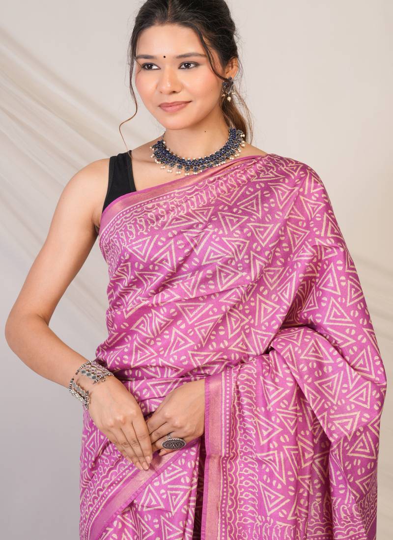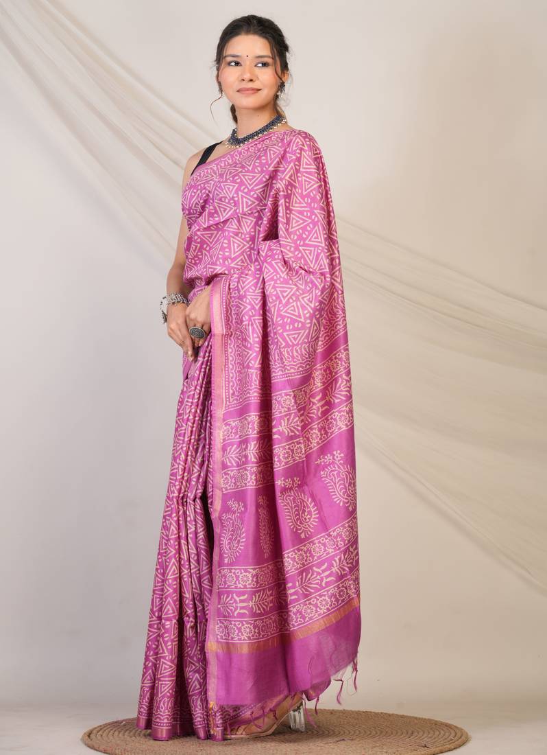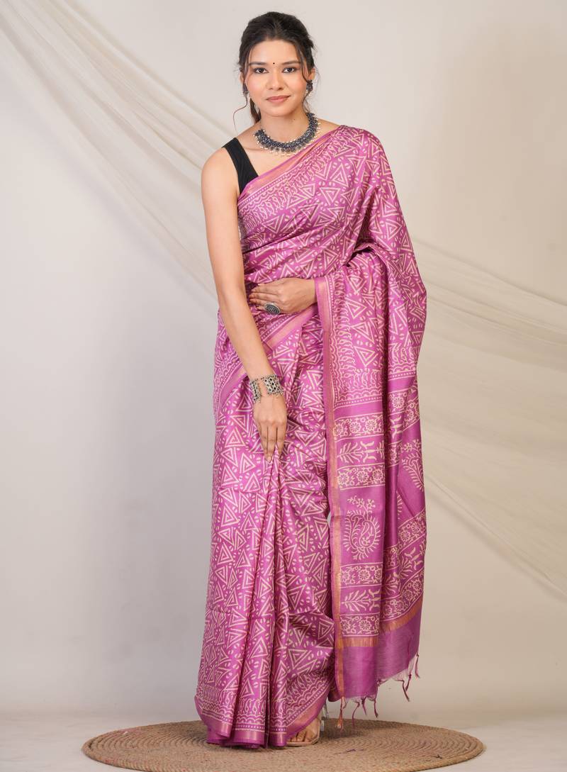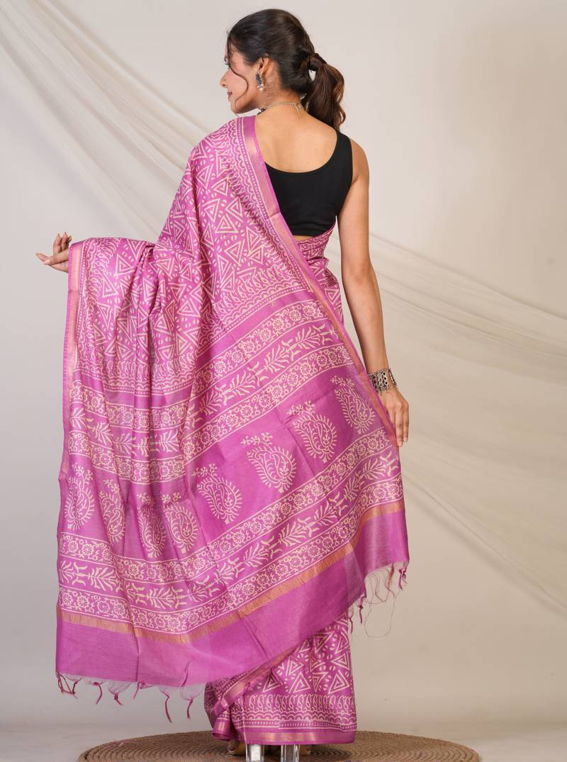 Purple zari work cotton silk blend bhagalpuri ethnic saree with unstitched blouse