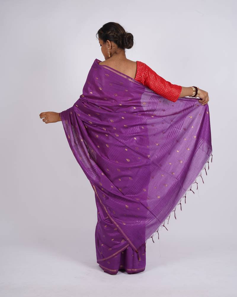 | Product Name | Purple Zari Work, Sequence Cotton Silk Blend Bhagalpuri Ethnic Saree With Unstitched Blouse | |