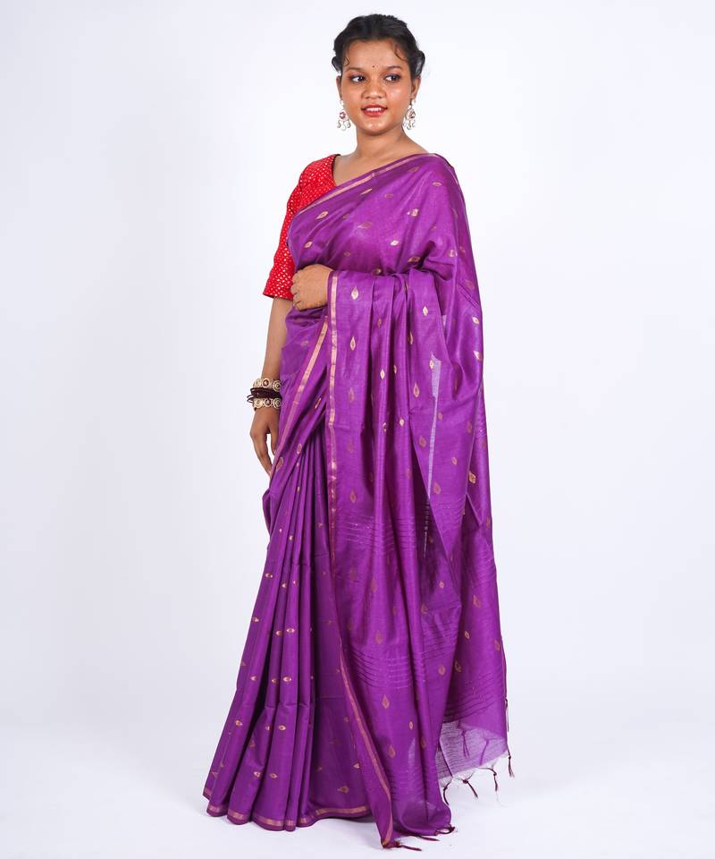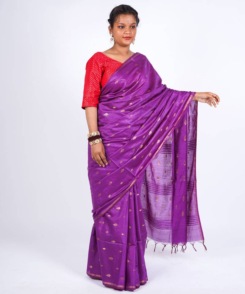 | • | Saree | : | Color- Purple / Fabric- Cotton Silk |