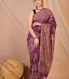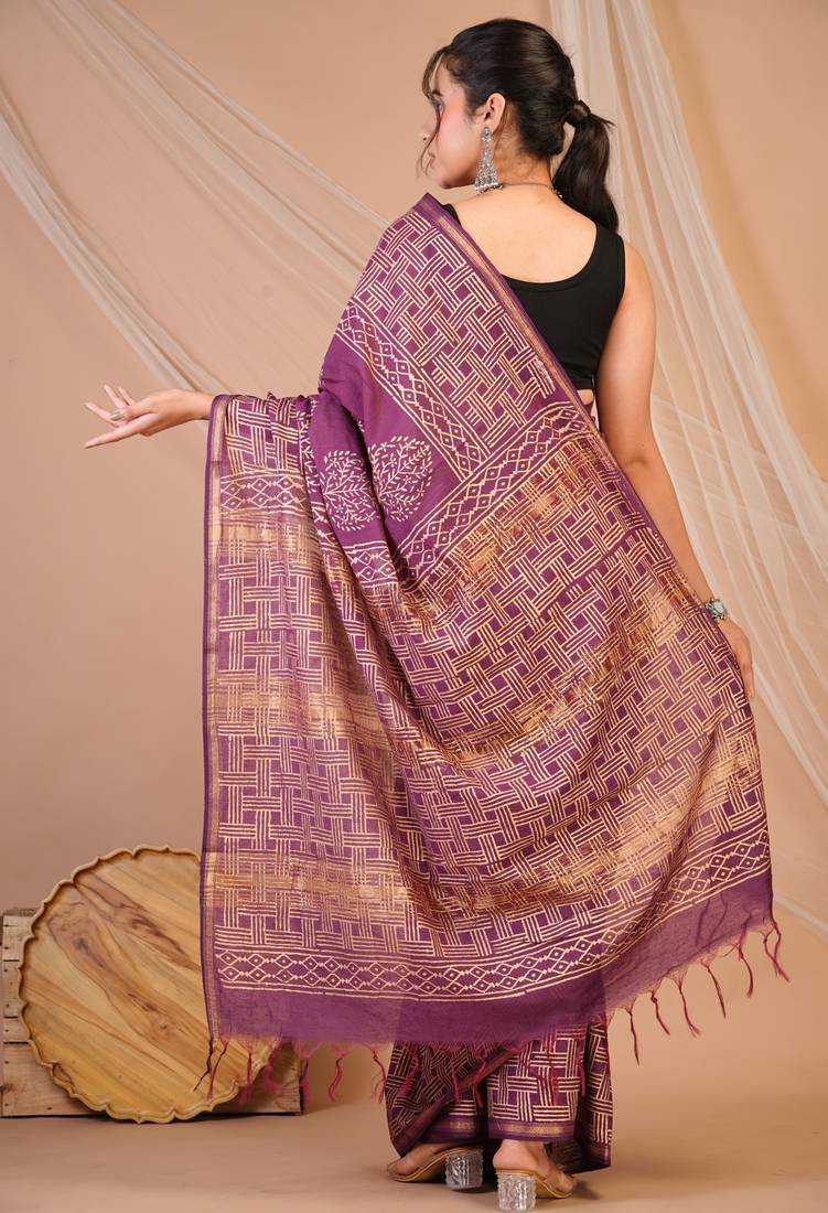 Purple zari work, tassle jay shree cotton fine bhagalpuri ethnic saree with unstitched blouse