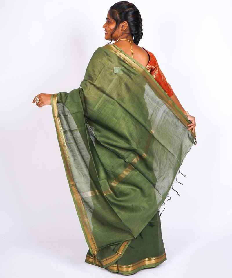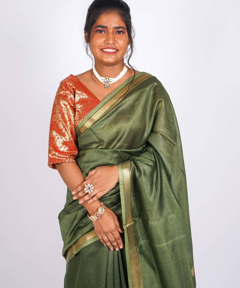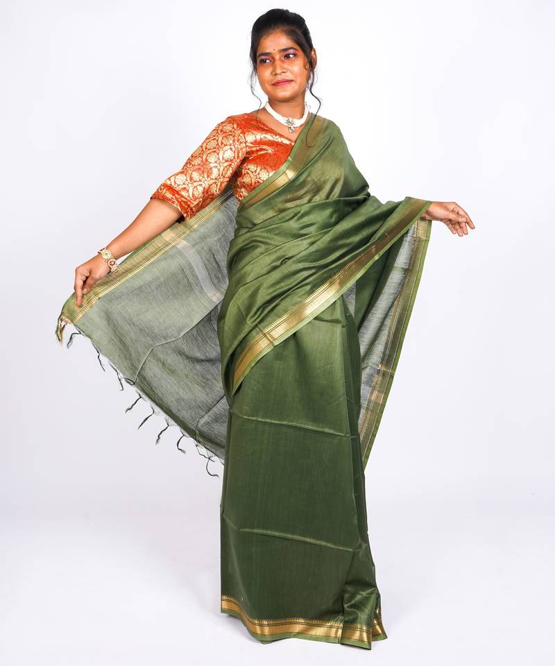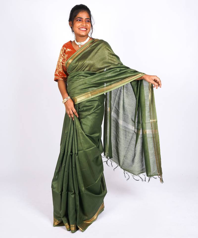 | Product Name | Rama Green Gold Zari, Maheshwari Work Tusser Silk Blend Bhagalpuri Ethnic Saree With Unstitched Blouse | |