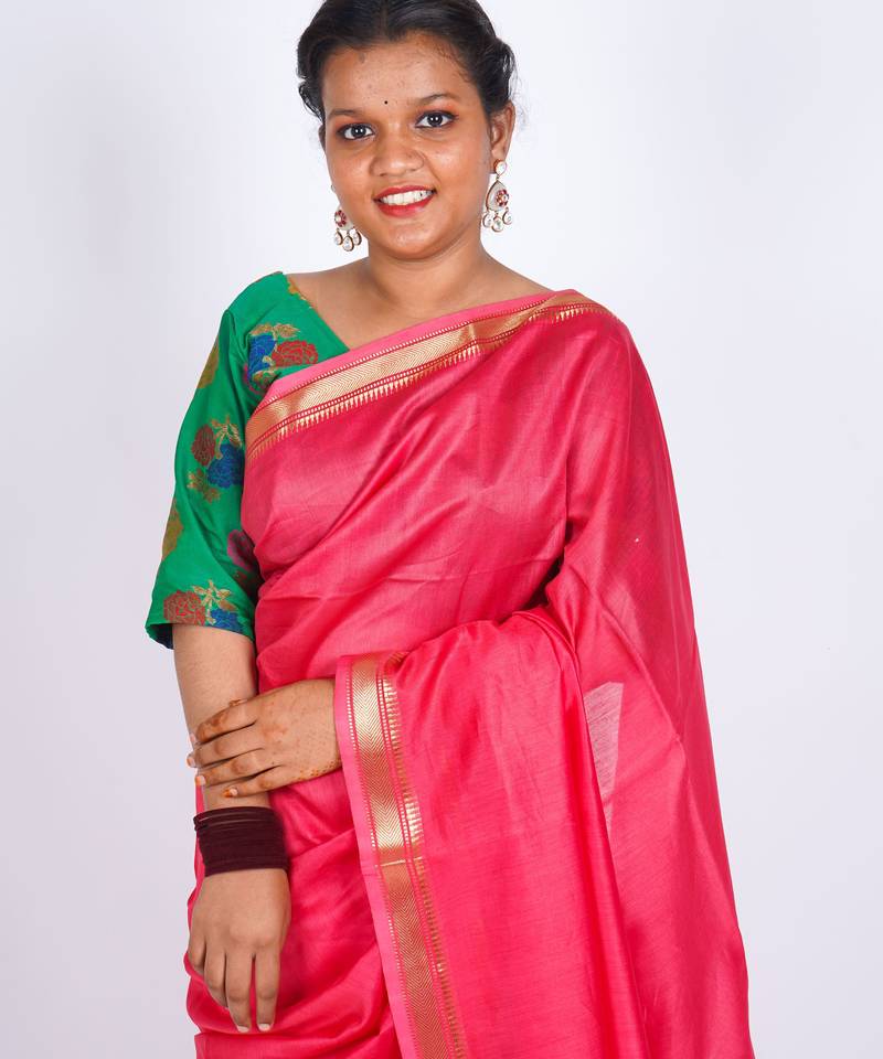 | Product Name | Rani Pink Gold Zari, Maheshwari Work Tusser Silk Blend Bhagalpuri Ethnic Saree With Unstitched Blouse | |