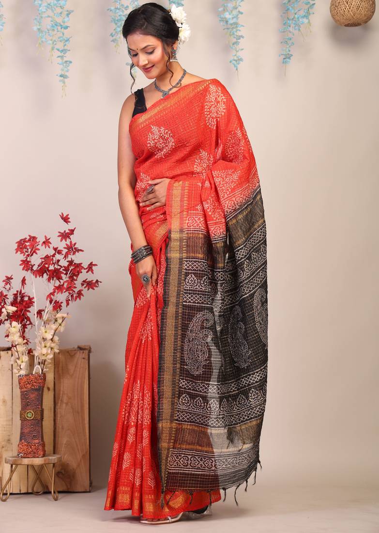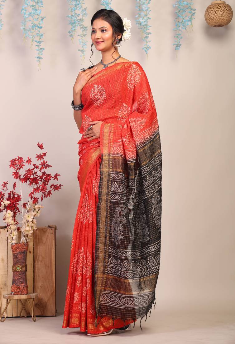| Product Description | Unveil Your Inner Diva With Our Red/Black Bhagalpuri Cotton Silk Saree — A Stunning Fusion Of Traditional Craftsmanship And Modern Elegance. Perfect For Weddings, Festive Celebrations, Or Any Occasion Where You Want To Stand Out, This Saree Brings Together The Rich Legacy Of Bhagalpuri Weaving And Intricate Block Printing In The Most Captivating Way. |