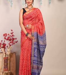 Red & blue zari work cotton silk blend bhagalpuri ethnic saree with unstitched blouse