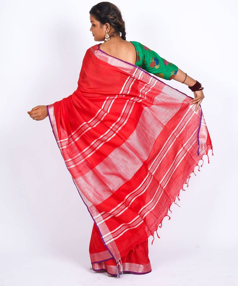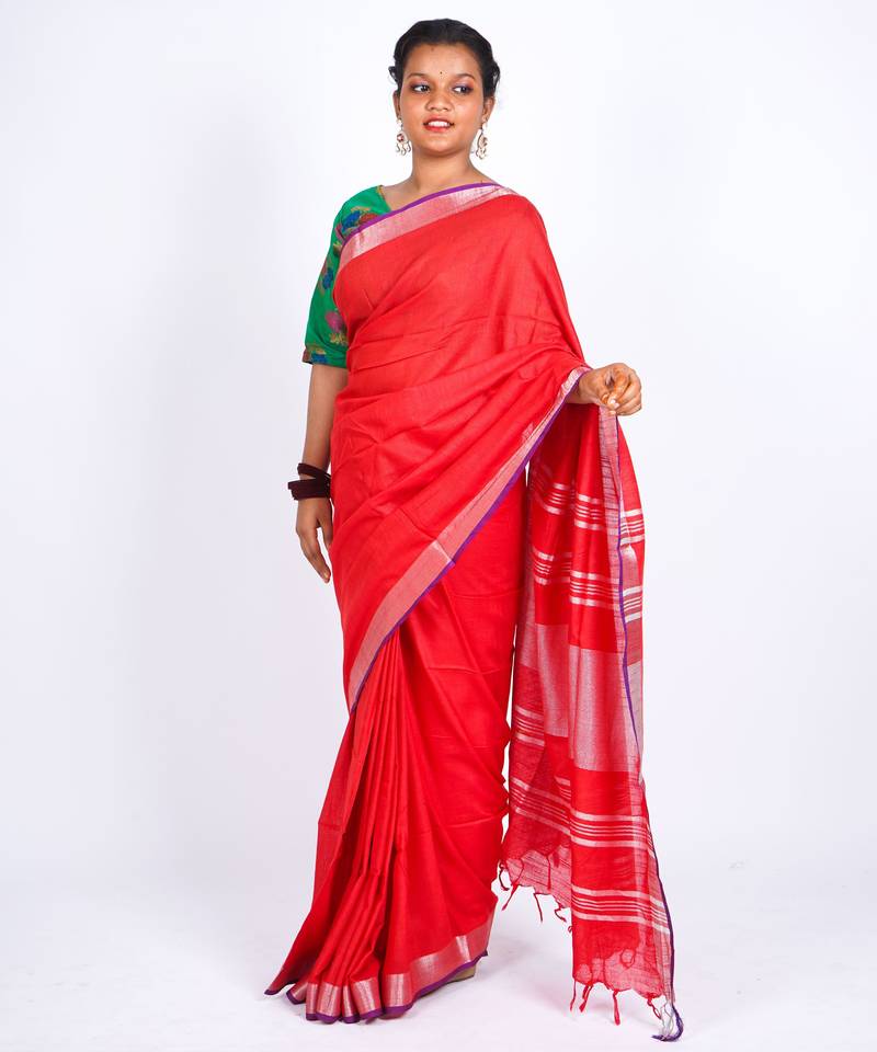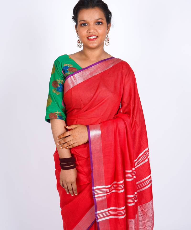 | • | Saree | : | Color- Red / Fabric- Linen |