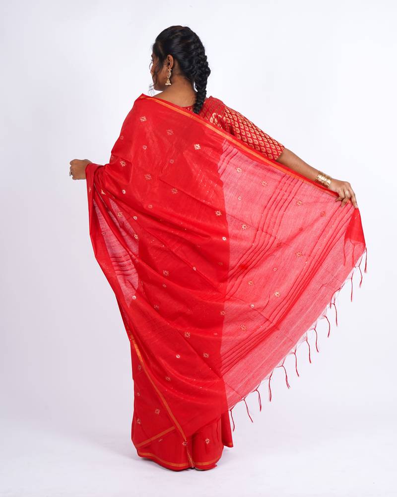Red zari work, sequence cotton silk blend bhagalpuri ethnic saree with unstitched blouse