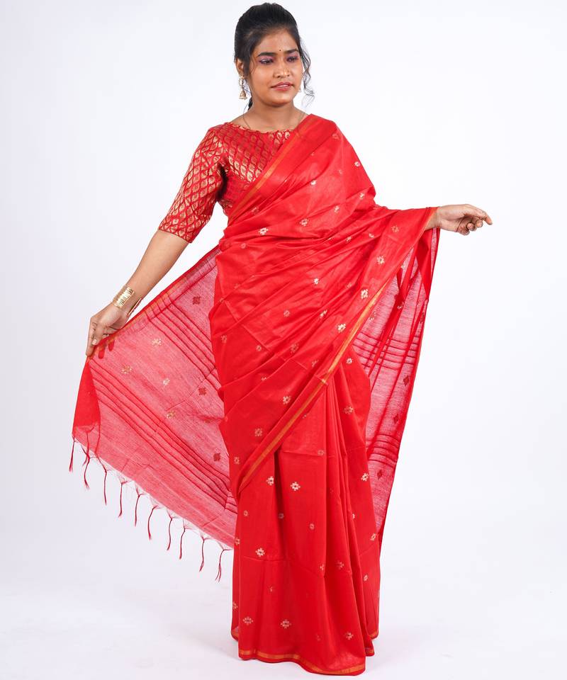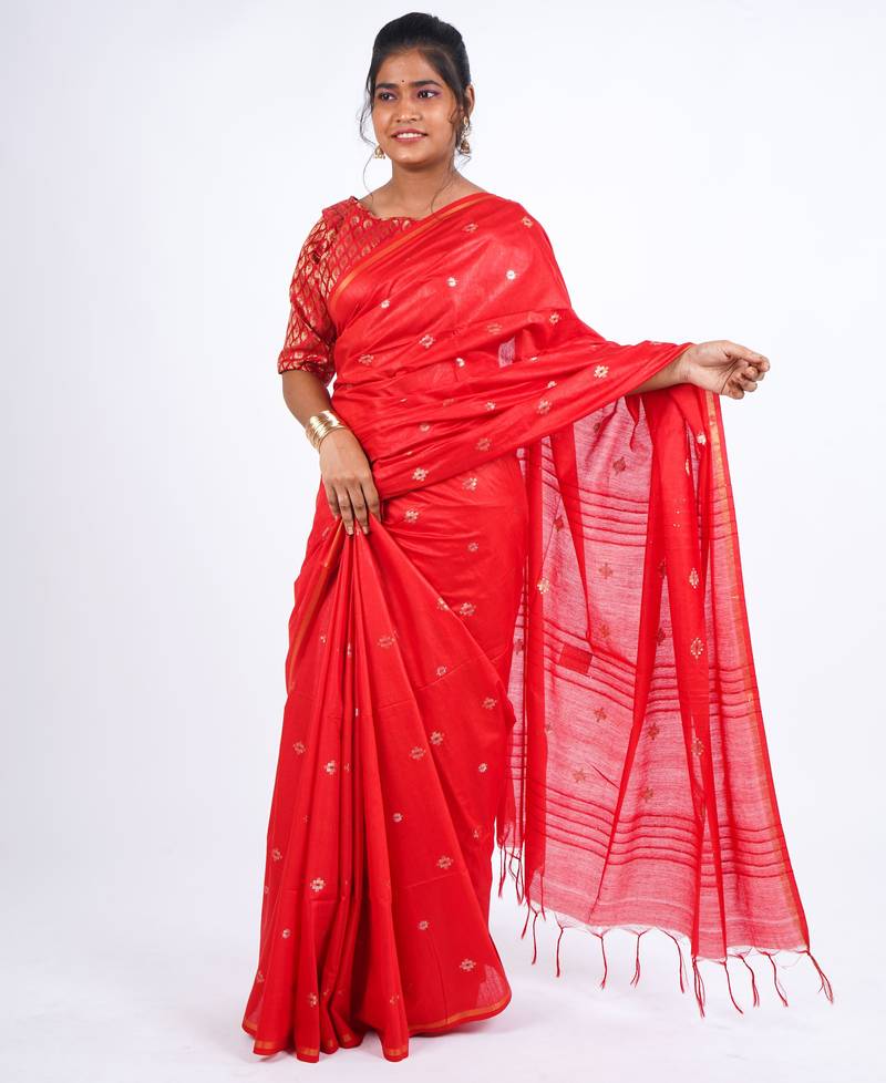 | Product Name | Red Zari Work, Sequence Cotton Silk Blend Bhagalpuri Ethnic Saree With Unstitched Blouse | |