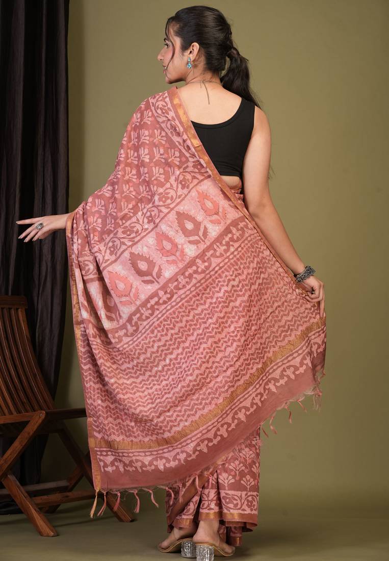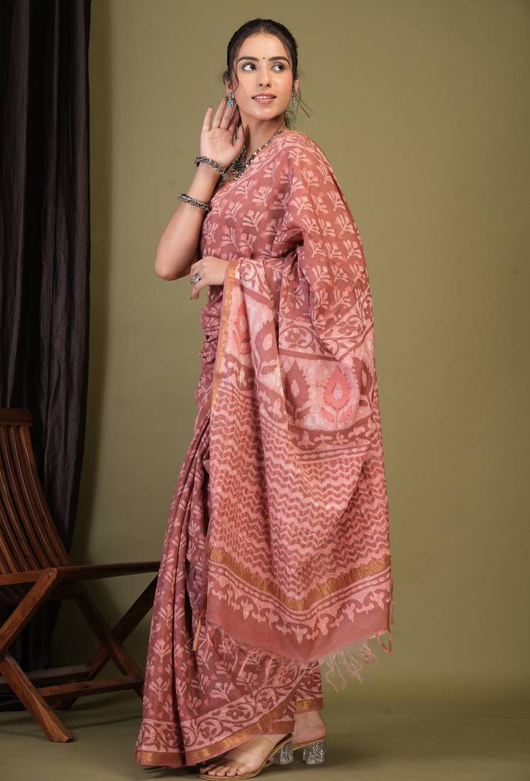 | Product Description | Turn Heads With Every Step In This Rouge Pink Bhagalpuri Cotton Silk Saree, Where Traditional Artistry Meets Festive Glamour. Crafted In Soft, Breathable Cotton Silk (Art Silk), This Saree Is Adorned With Intricate Dabu Hand Block Prints, Lending It A Rich, Textured Appeal That Celebrates India's Timeless Textile Heritage. |