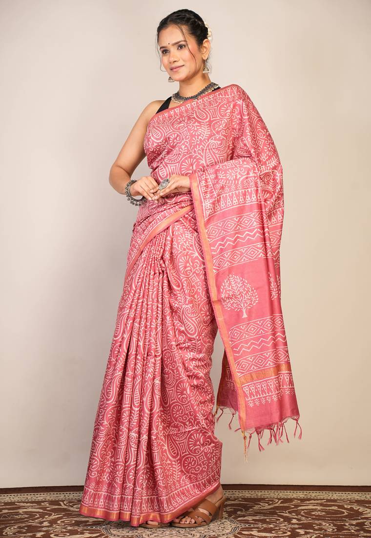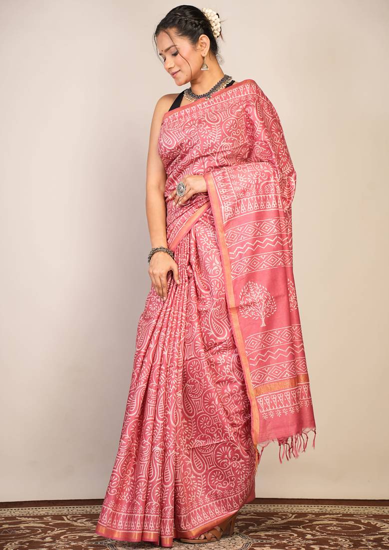 | Product Description | Make Every Occasion Truly Memorable With This Stunning Salmon Pink Bhagalpuri Cotton Silk Saree, Designed To Highlight Your Boldness And Elegance. Crafted From Premium Cotton Silk, It Drapes Softly And Breathes Comfortably—Offering A Luxurious Feel That's Perfect For Weddings, Festivals, And Special Celebrations. |